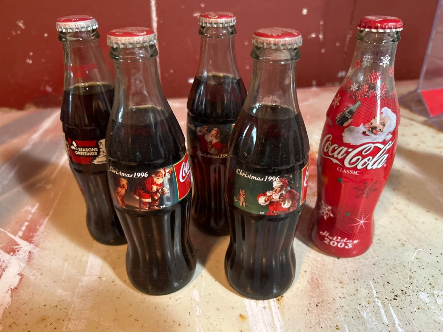 Selling a set of vintage Coca-Cola collectible bottles! There are a few different designs, including Christmas 1996 and Holiday 2003 bottles. Great for any Coca-Cola collector!