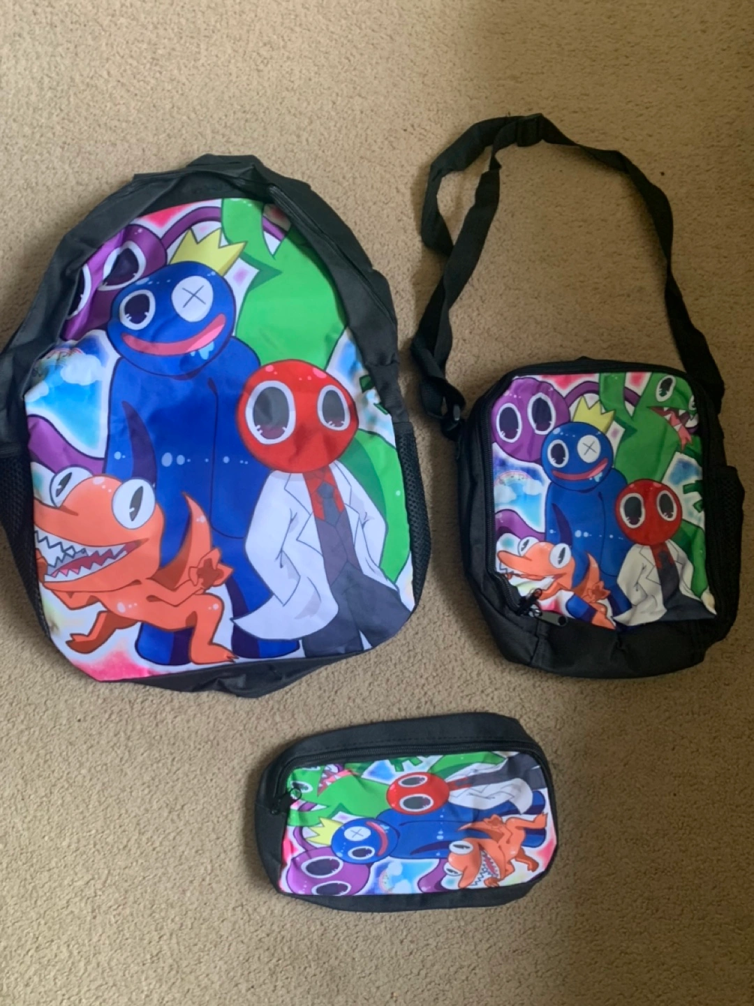 Rainbow Friends themed backpack set! Includes a backpack, lunch bag and pencil case. Perfect for school or travel