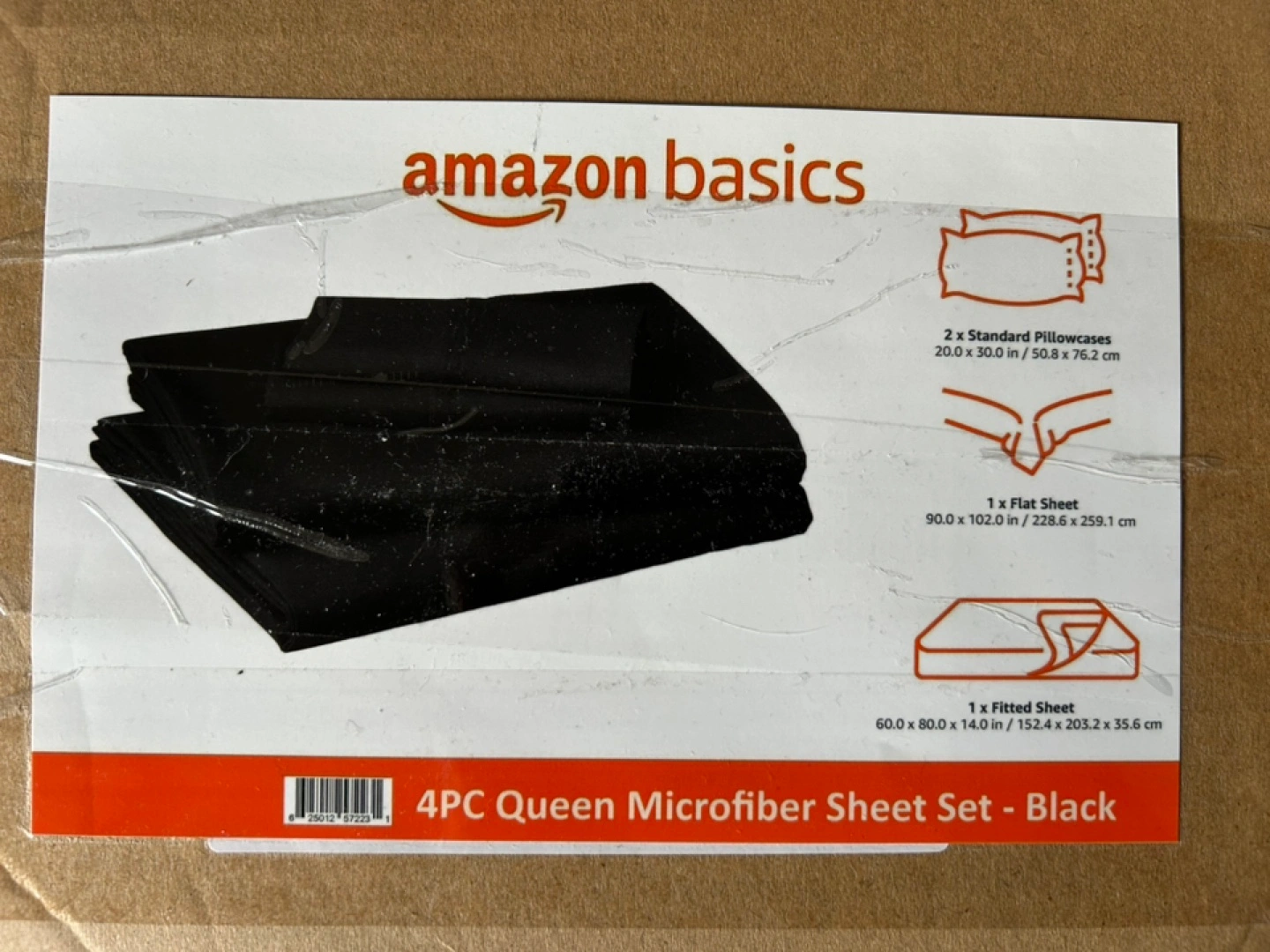 Selling an Amazon Basics 4PC Queen Microfiber Sheet Set in black. The set includes: