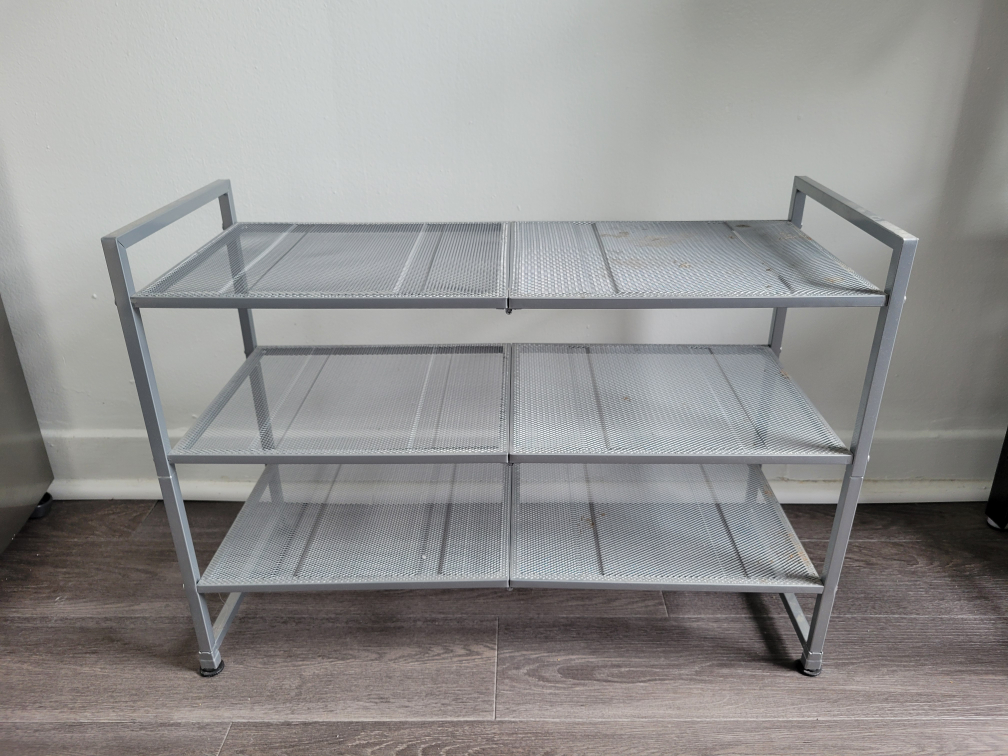 Here's a handy 3-tier metal shoe rack, perfect for keeping your entryway or closet organized! It's in good condition and ready to hold all your favourite footwear