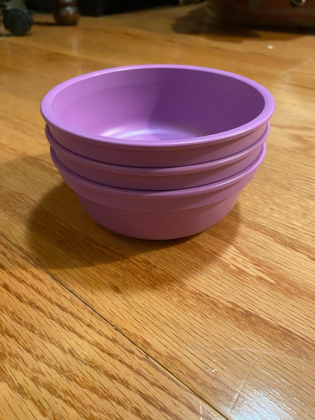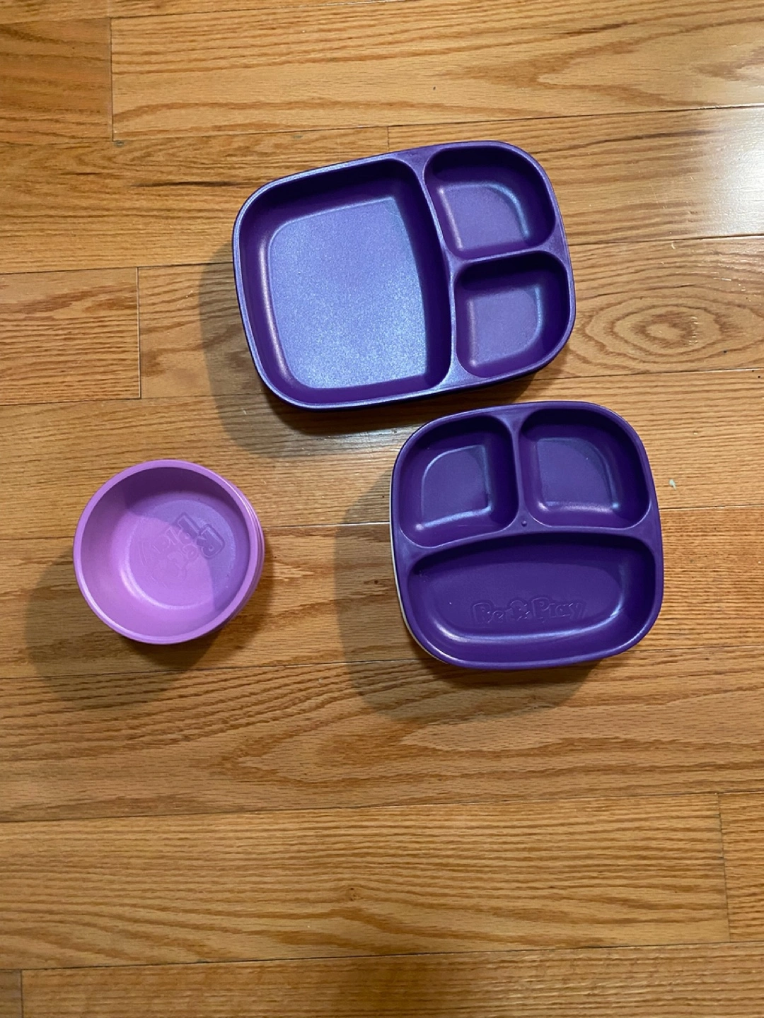 Selling a set of Re-Play bowls and plates in purple tones! These are great for kids and are super durable. There are a few bowls and plates included, perfect for mealtime