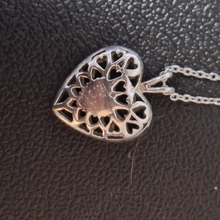 Cute heart pendant necklace, perfect for everyday wear or a special occasion! The delicate chain and intricate heart design make it a lovely accessory
