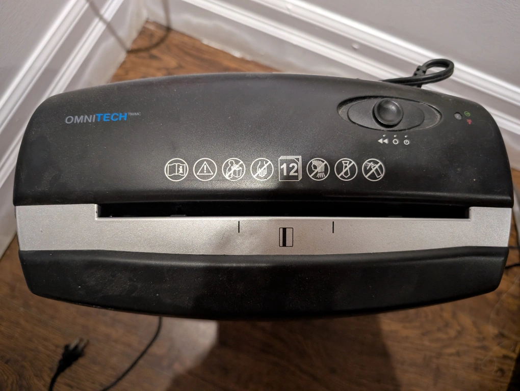 Selling an Omnitech paper shredder.
