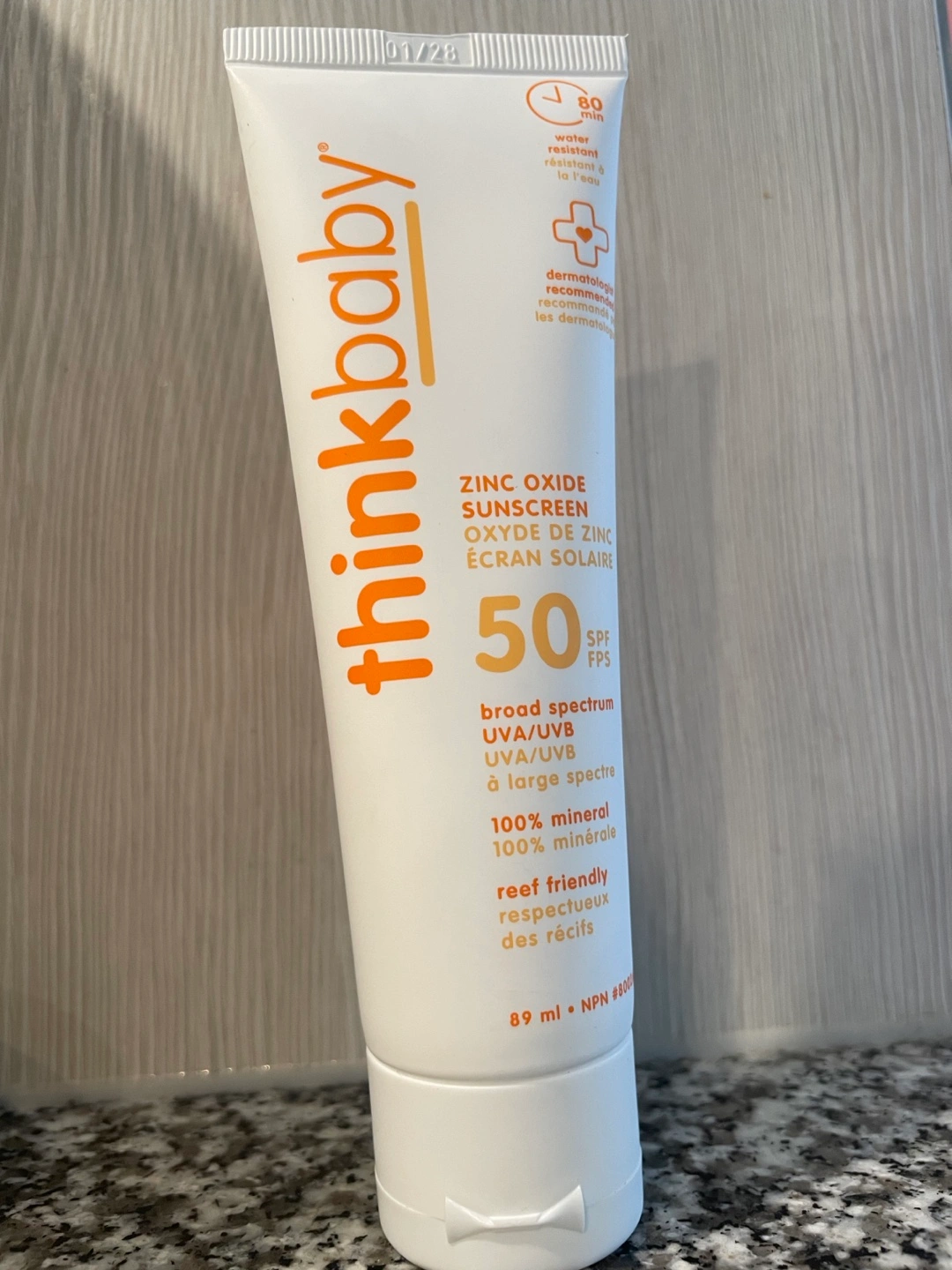 Thinkbaby sunscreen provides broad spectrum UVA/UVB protection and is water resistant for up to 80 minutes. It's a 100% mineral sunscreen and is reef friendly. This sunscreen is 89 ml