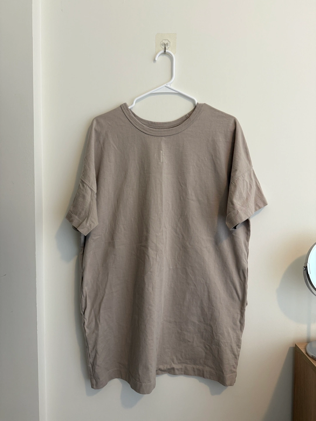 Selling a Calvin Klein oversized tee in a lovely taupe colour. Can be worn as a T-shirt dress for shorter women (5”2 and under). It's in great condition, never worn and ready for a new home. Perfect for a relaxed, casual look!
