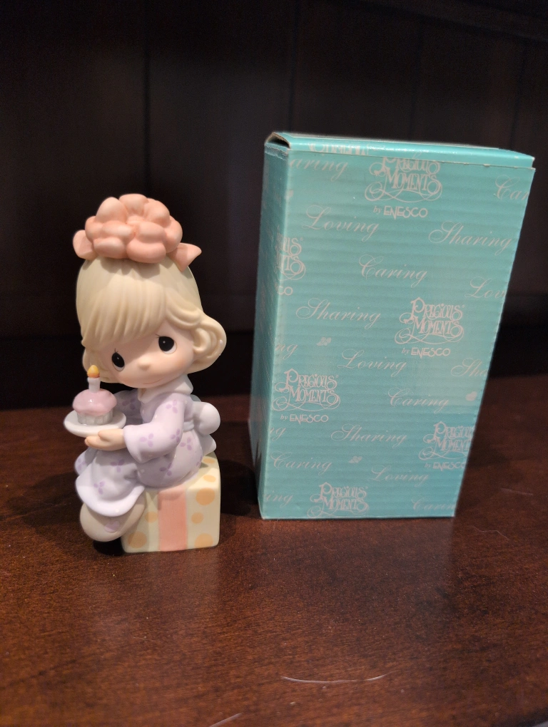 Selling a lovely Precious Moments figurine titled "Wishing You The Sweetest Birthday"! It's in great condition and comes with the original box. This porcelain figurine is perfect for collectors or as a sweet birthday gift!