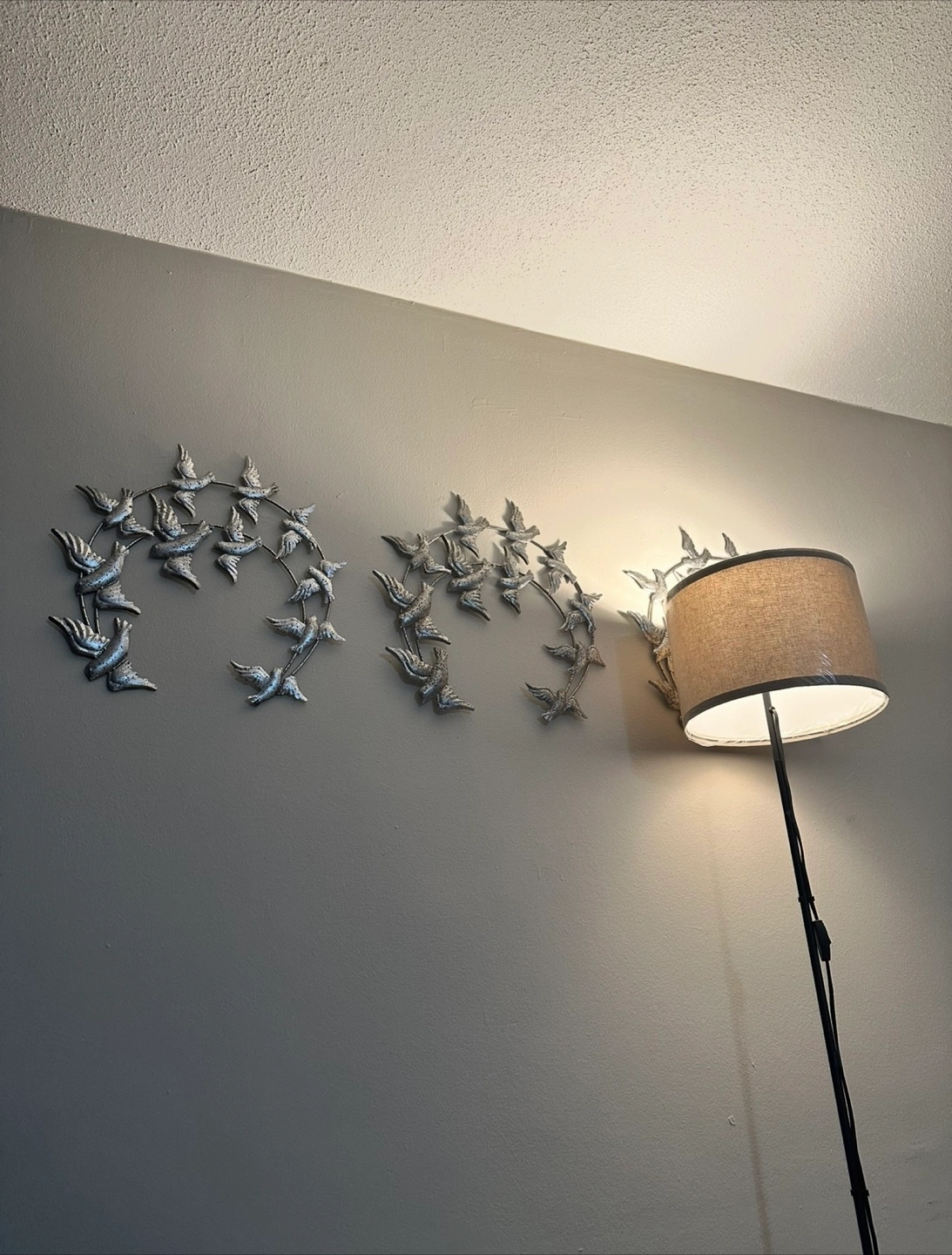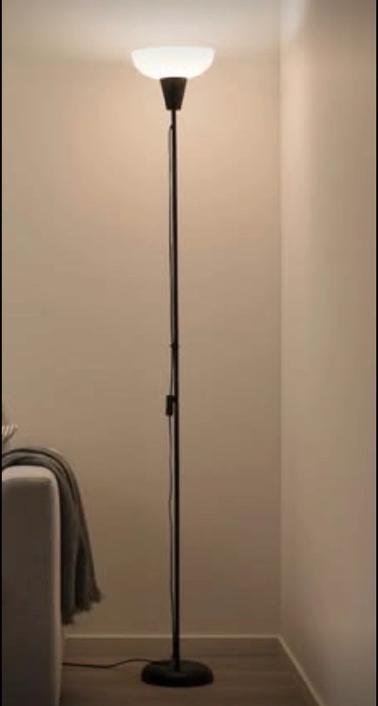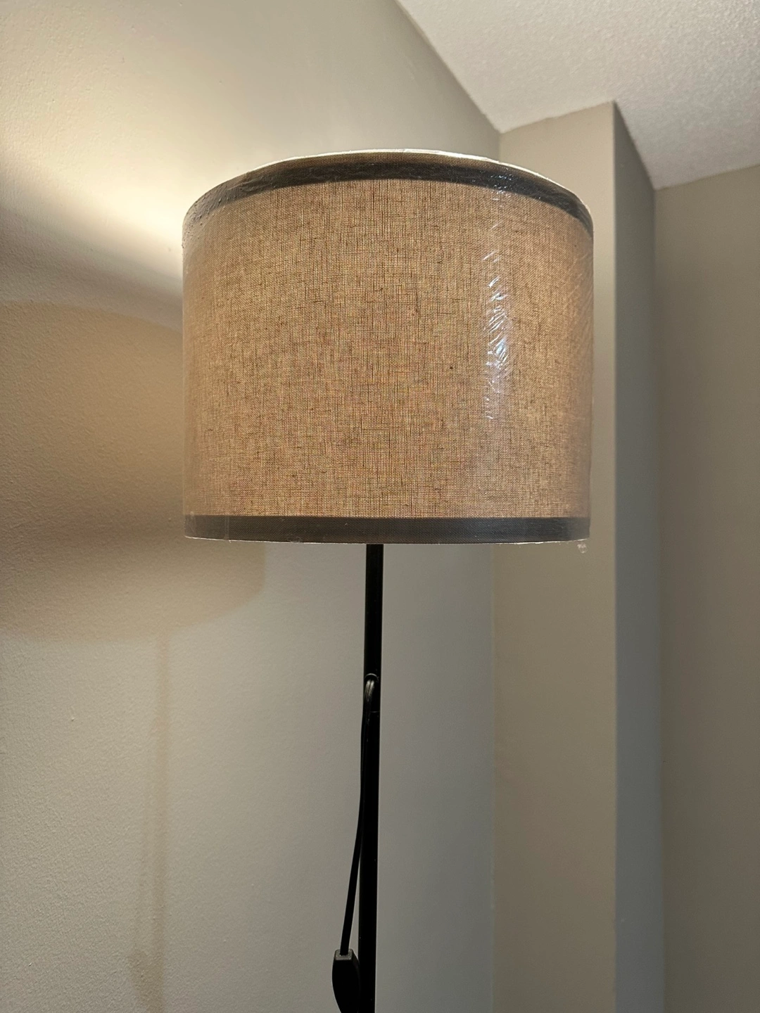 Selling a floor lamp with a neutral linen shade. It's in an excellent condition and ready to brighten up your space! The lamp has a simple on/off switch and a sleek, minimalist design.