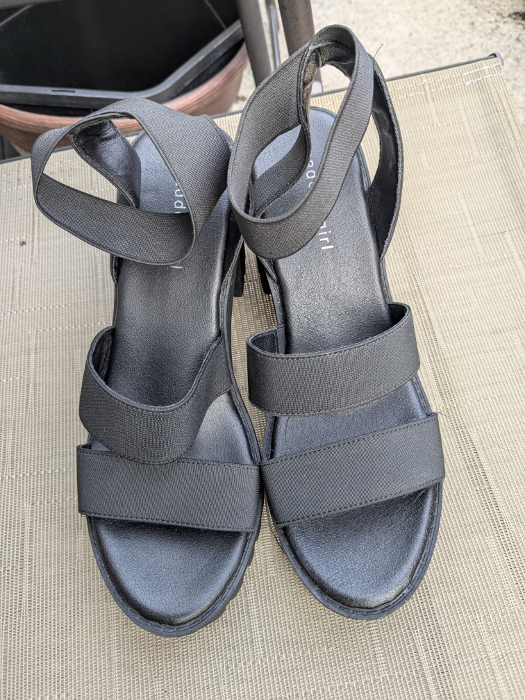 These Madden Girl platform sandals are super cute and brand new! They feature a chunky heel and elastic straps for a comfortable fit. Great for adding a bit of edge to any outfit