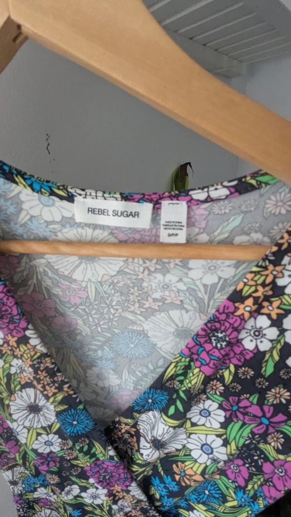 Selling a Rebel Sugar dress with a lovely floral pattern! It's a wrap dress style and marked as size S/P.