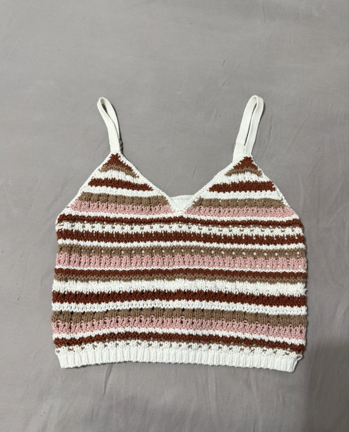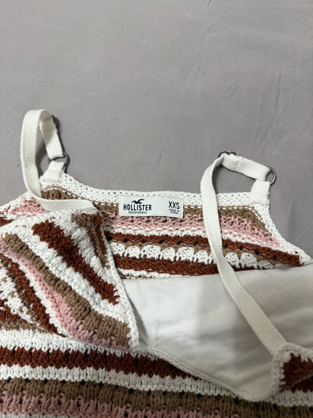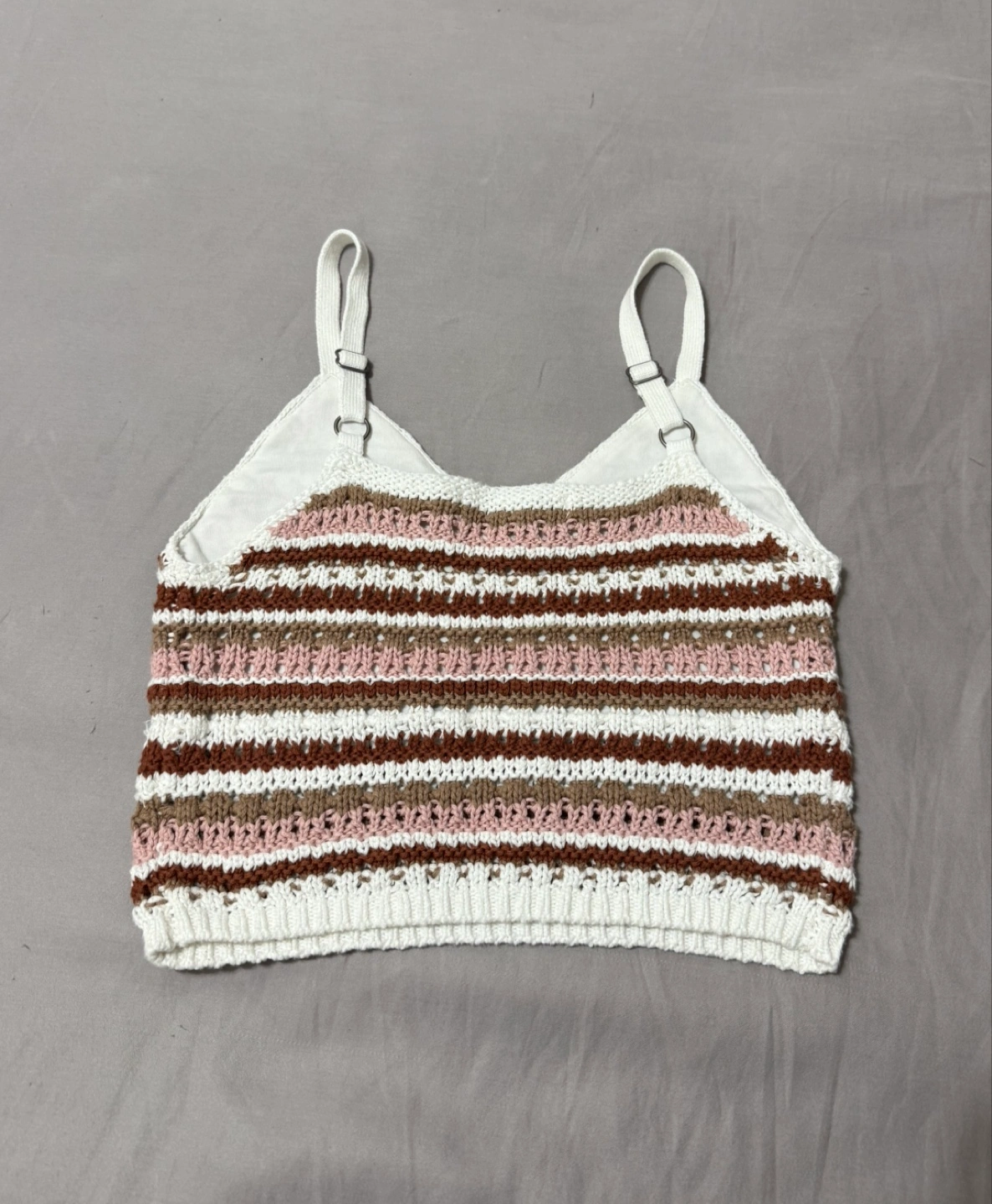 Cute Hollister knit tank top with a striped pattern in brown, pink, and white!