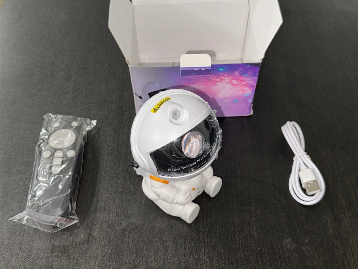 Check out this brand new Astronaut Galaxy Projector! It projects a cool nebula and starry sky effect. It comes with its box, a remote control, and a USB cable for power. It's compact and creates a nice ambiance. New and never used No low ball please $25 for 3