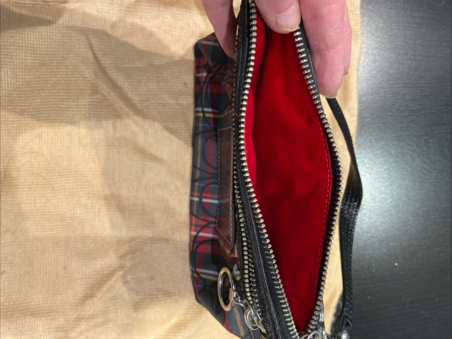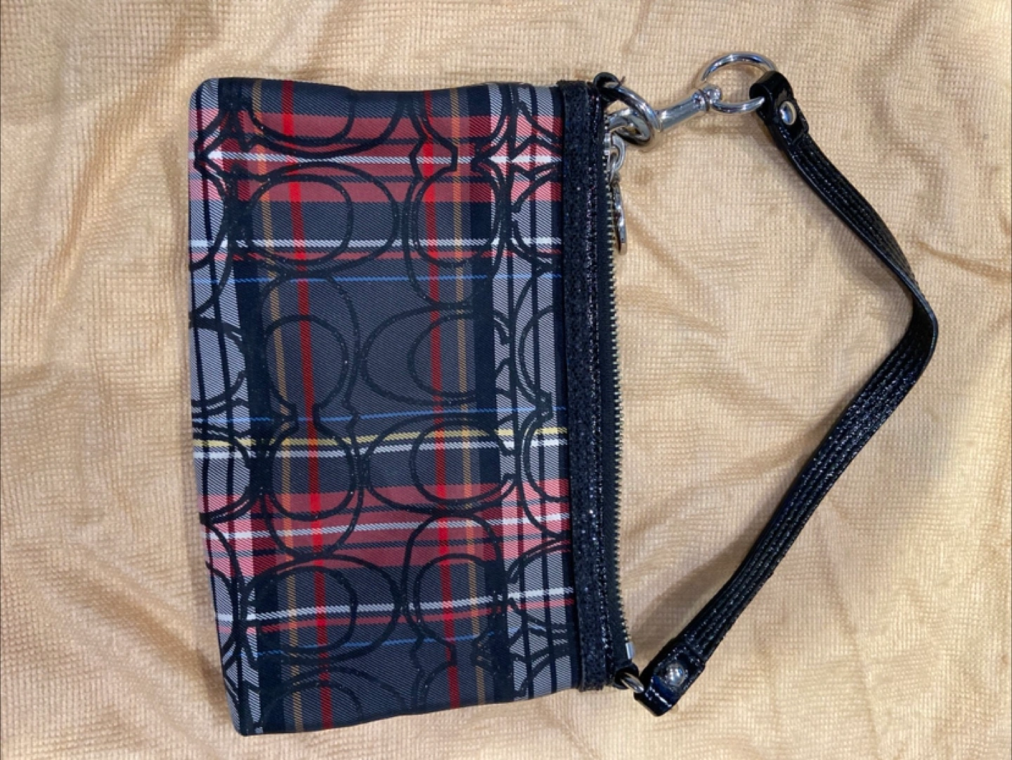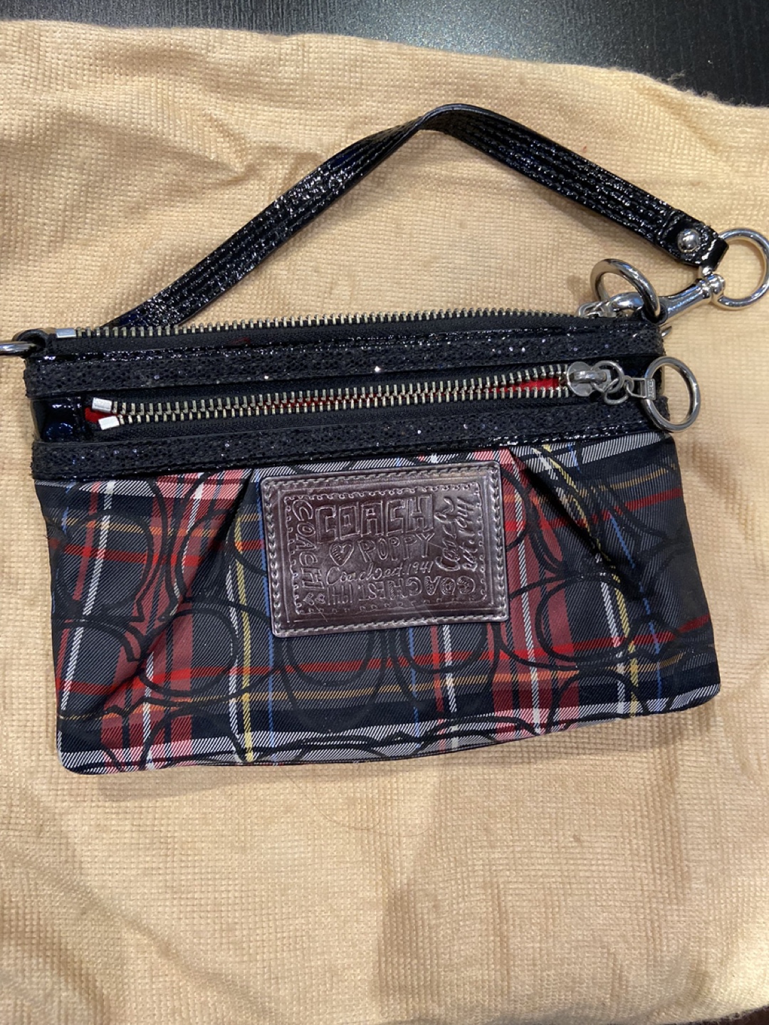 Selling a Coach Poppy tartan wristlet. It has a red interior and a black wrist strap. It's in great condition. Only used a handful of times.