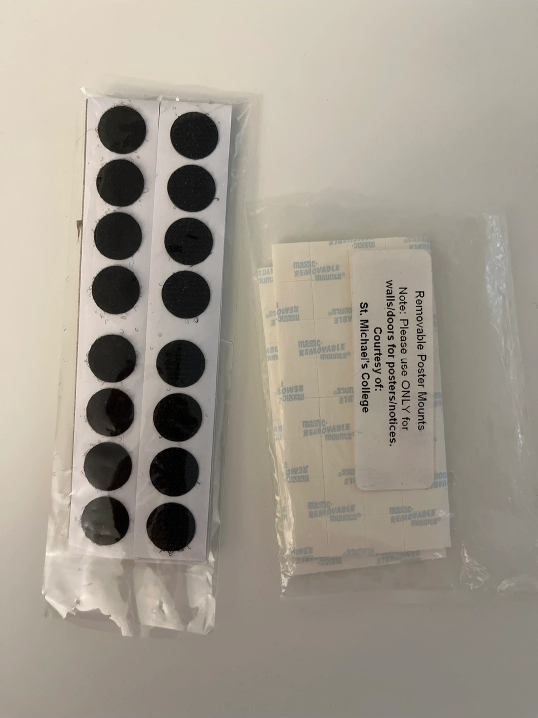 Selling removable poster mounts, perfect for walls and doors! They're are magic removable mounts 14 pairs of velcro sticker dots Take both for $1