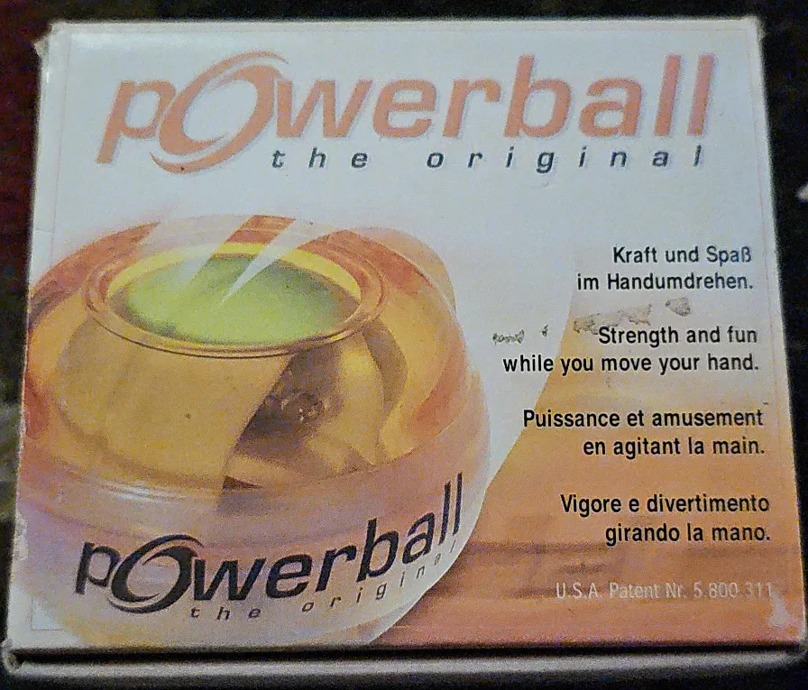 I'm selling a Powerball, also known as a gyroscope exercise tool. It's brand new in the original box with instructions and a string for starting the gyroscope. This is a fun way to improve strength and coordination in your hand and wrist! It's the blue version.