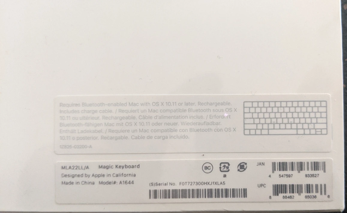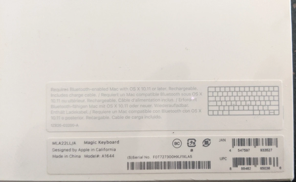 Apple Magic Keyboard - US English (MLA22LL/A Model#A1644)