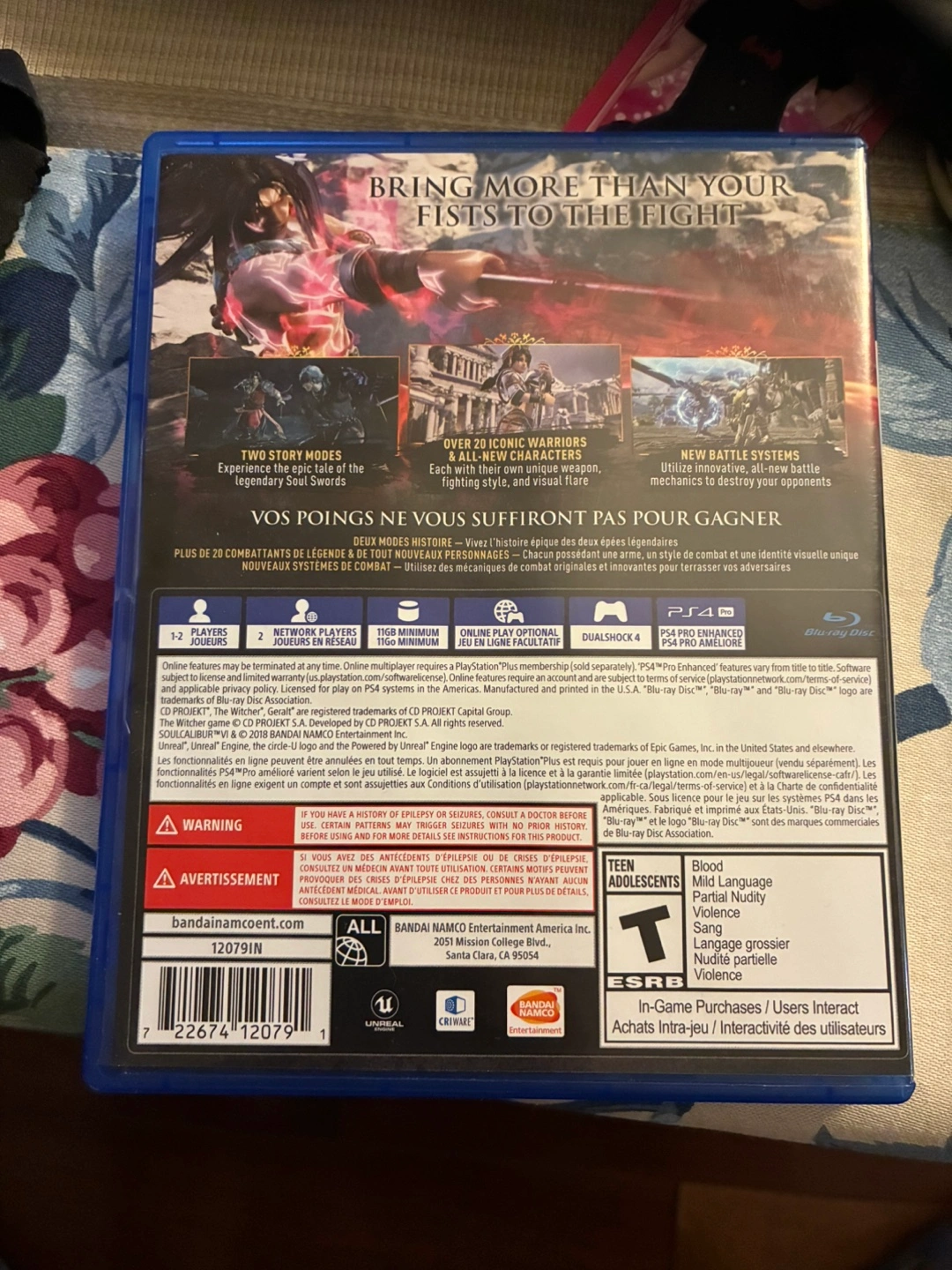 Selling a used copy of Soulcalibur VI for the PlayStation 4. Rated T for Teen. Bring more than your fists to the fight! Includes two story modes and over 20 iconic warriors π Harbord & Major St πͺ Pick-up only π° Cash-only