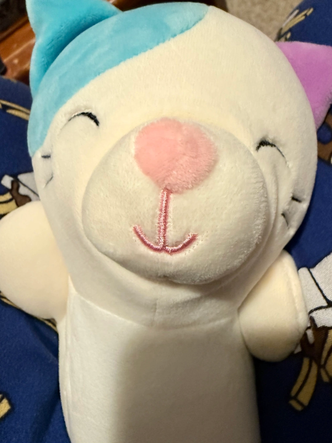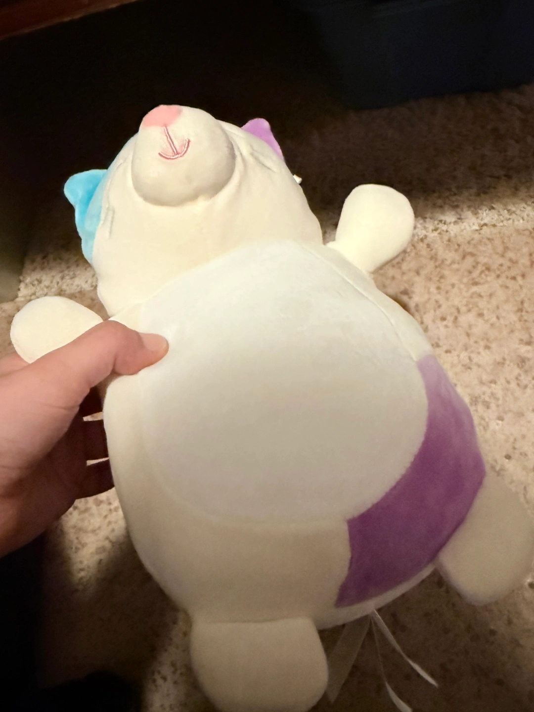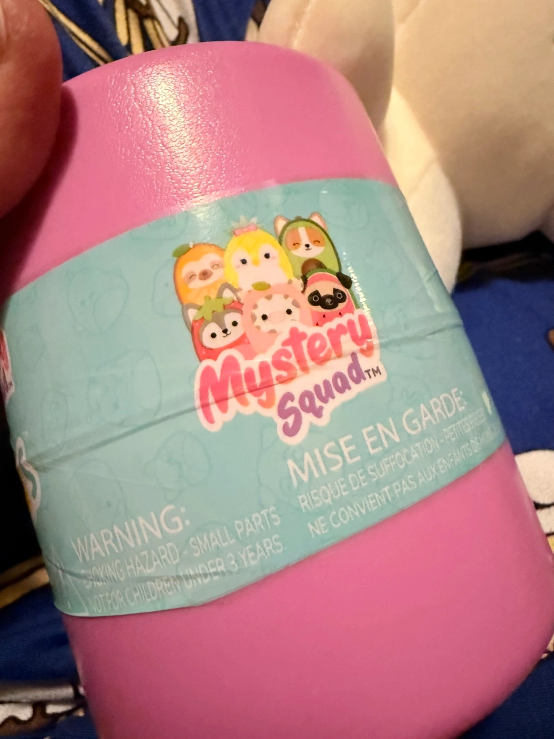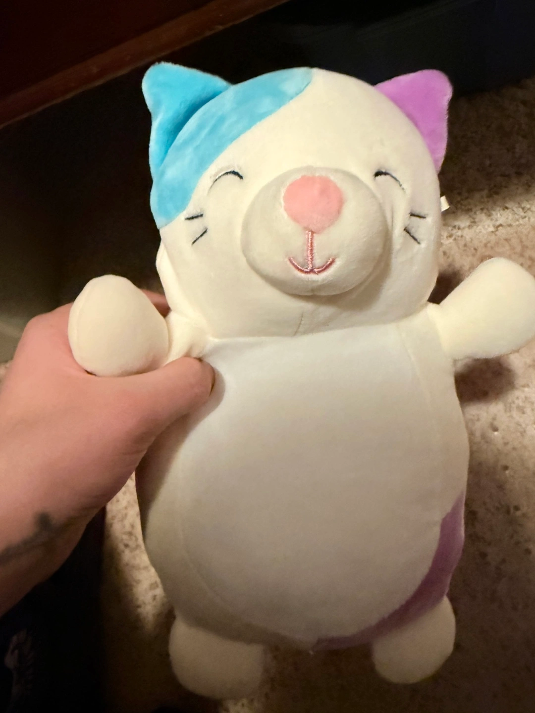Selling a Squishmallows Mystery Squad capsule and a cute cat plush! The capsule is unopened, so it's a surprise what's inside. The cat plush is soft and cuddly, perfect for snuggling I originally paid $21 for the kitty and $10.50 for the capsule. Inside the capsule is peach Rosie the pig.