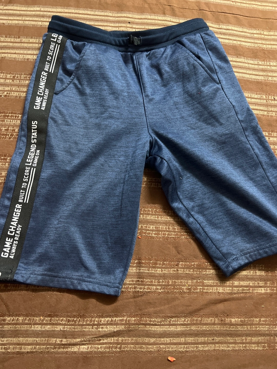 Comfy blue athletic shorts with a sporty design! The side reads 'Game Changer Built to Score Legend Status'. Perfect for workouts or lounging around