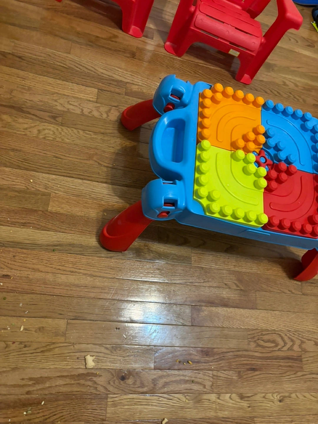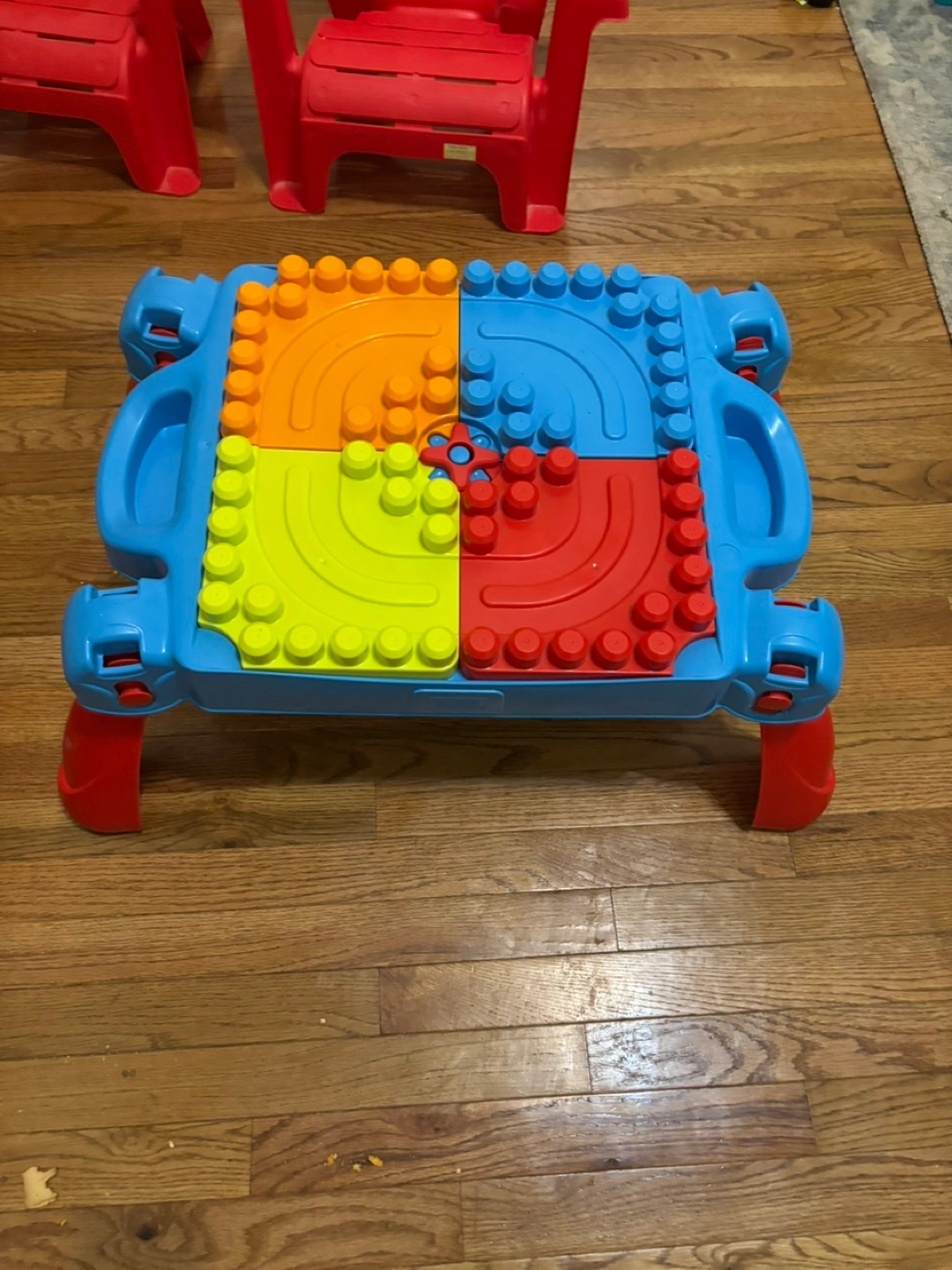 Selling a kids activity table with a block-style design! It's perfect for creative play and building fun. The table features colorful sections and is in great shape for your little one's activities it comes with blocks inside the table