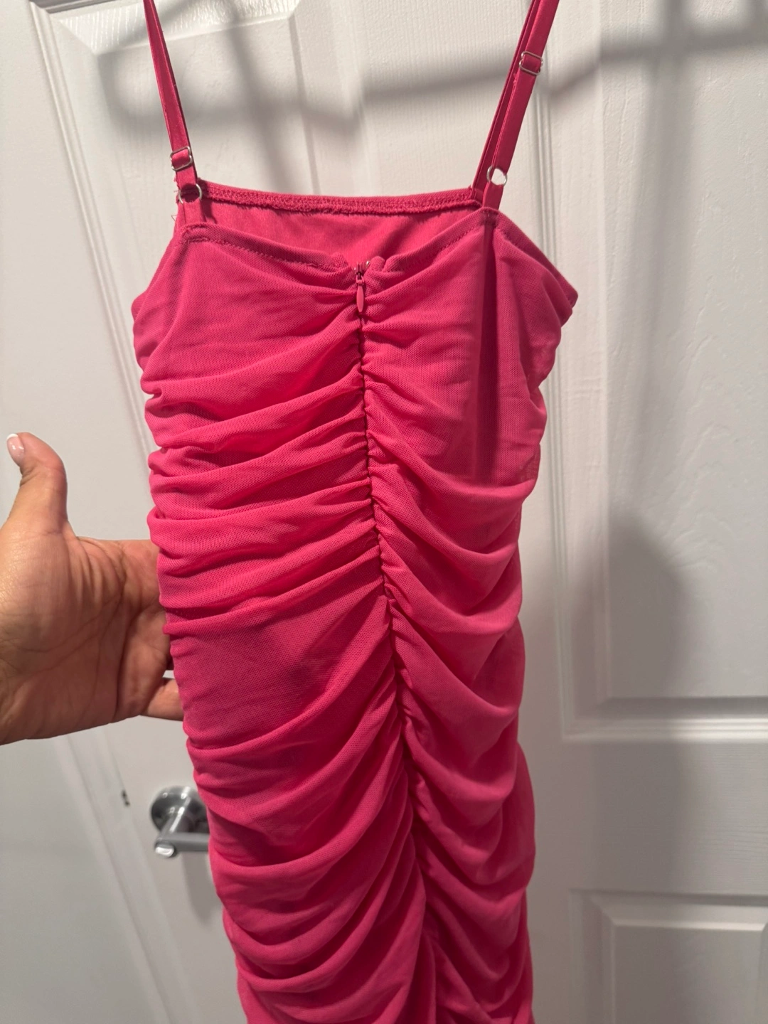 Selling a cute pink ruched dress from Fashion Nova! It's a size small and in great condition. Perfect for a night out or a special occasion. The ruched detailing is super flattering!