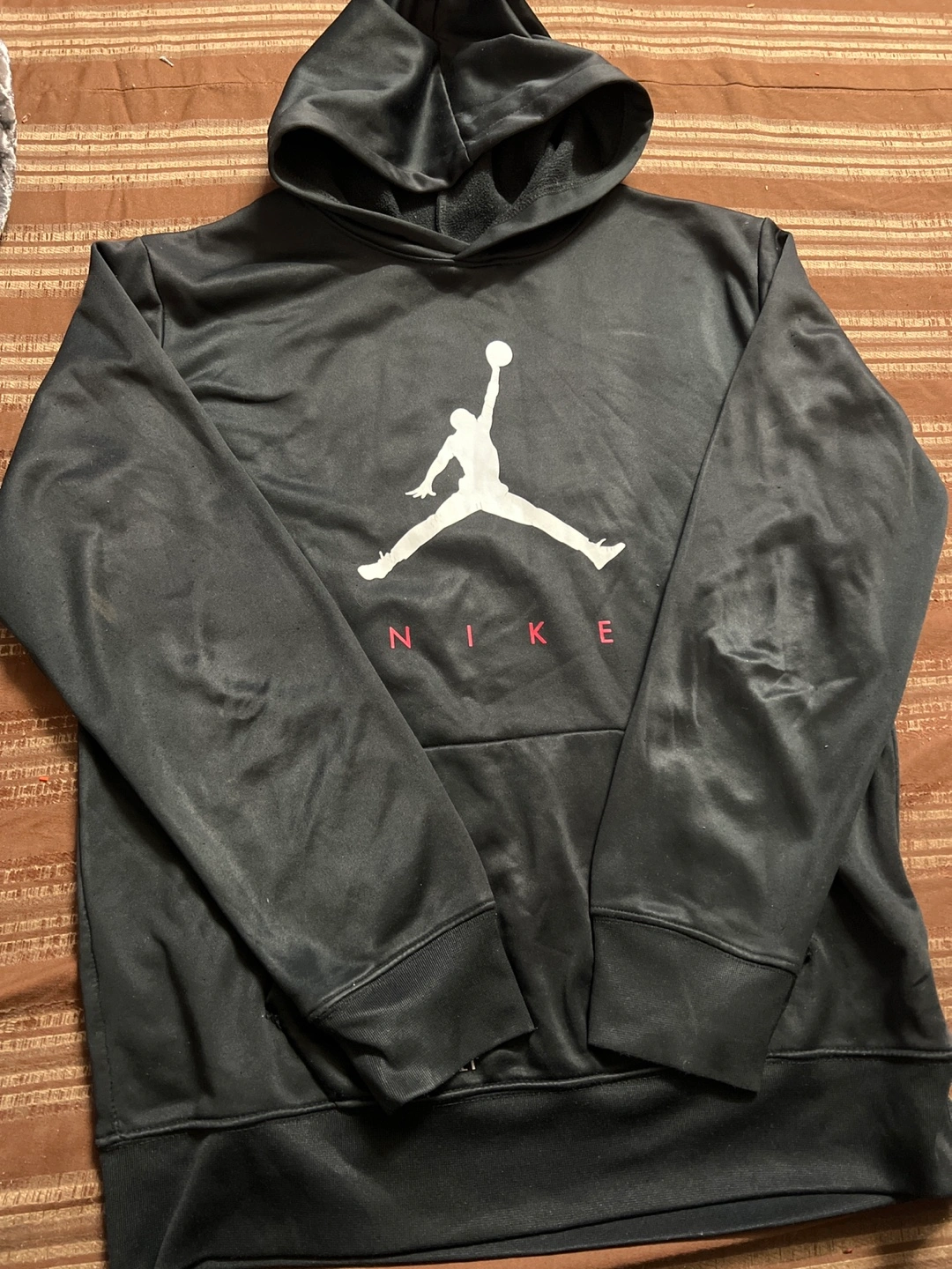 Selling a Nike Air Jordan hoodie in size XL, suitable for ages 13-15 years. It's in great condition and features the iconic Jumpman logo. Perfect for any young basketball fan!