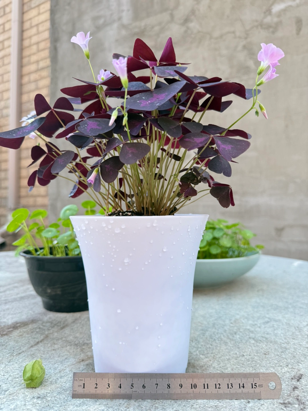 I'm selling a lovely Oxalis Triangularis, also known as the Purple Shamrock plant! It's currently potted in a white pot, adding a touch of elegance to its deep purple foliage. This plant is known for its unique triangular leaves that fold up at night and open during the day. Perfect for adding a pop of color to your indoor space!