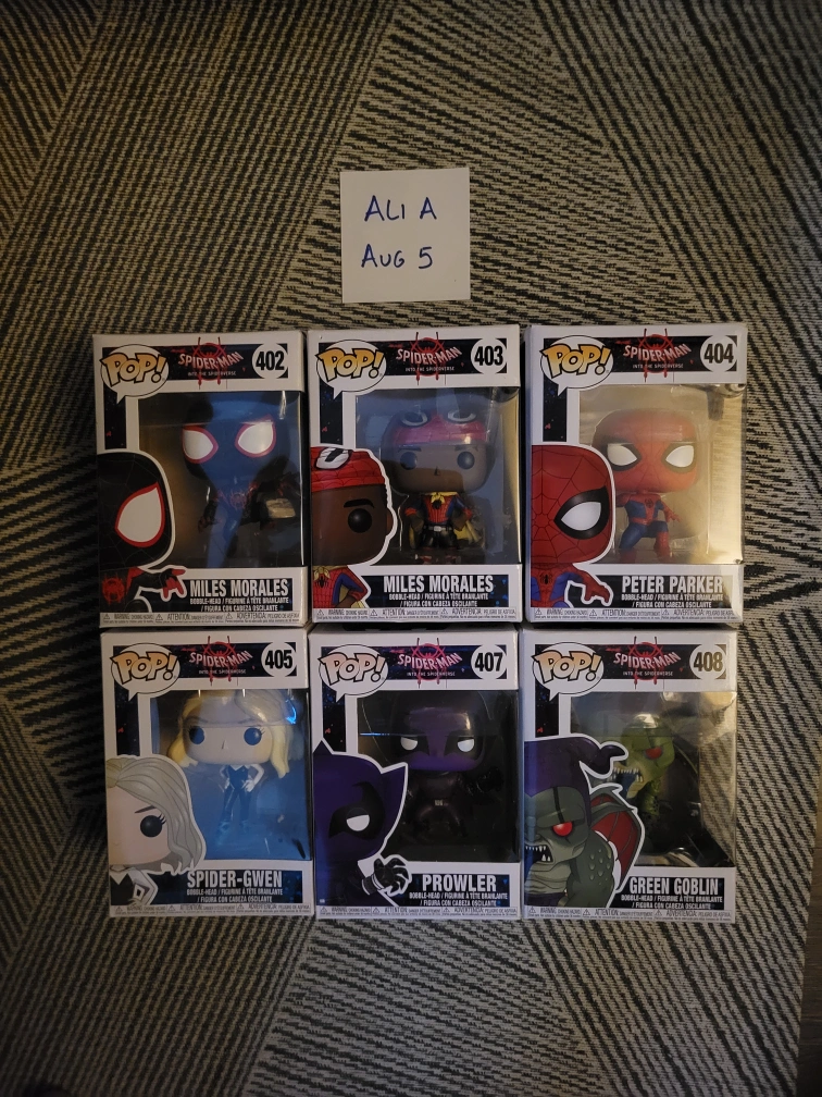 Selling a set of Funko Pop figures from Spider-Man: Into the Spider-Verse!