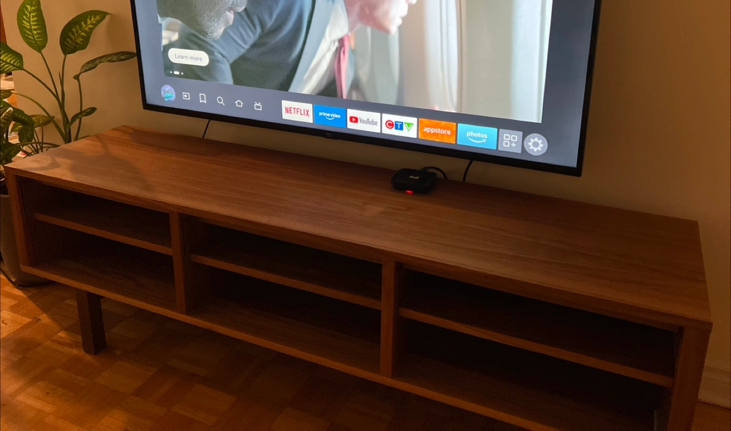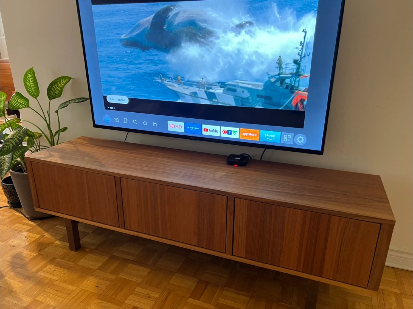 Add a touch of mid-century modern charm to your living space with this elegant walnut TV console. Featuring clean lines, a warm wood finish, and practical storage, it blends style and function effortlessly. This piece is in good condition, showing only minor signs of wear, and remains a standout addition to any room. Dimensions: 160 x 40 x 50 cm. * The only reason I am selling it is because I moved to a smaller place.