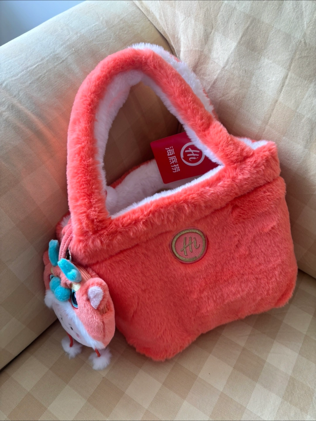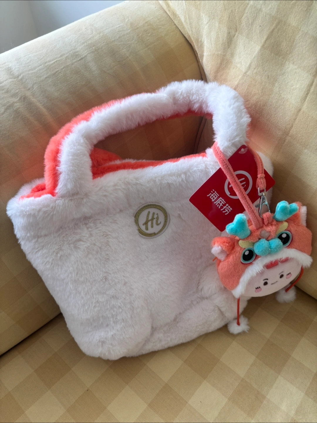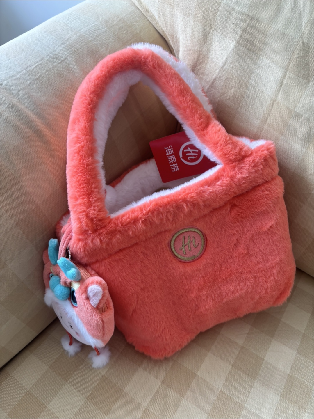 It’s a brand new Super cute double sided plush handbag! It's in great condition and comes with a matching dragon charm. Perfect for adding a touch of fun to any outfit.