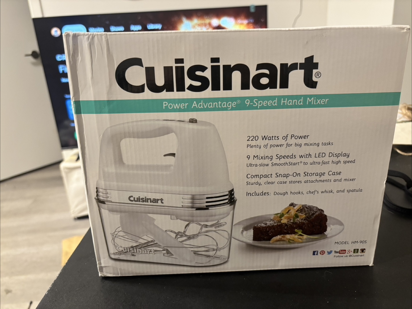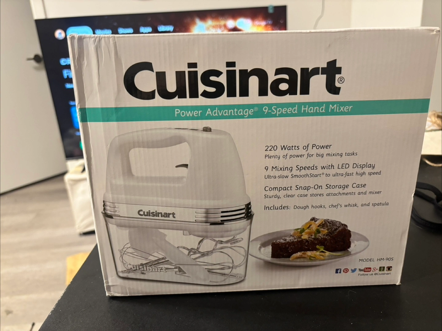 I'm selling a brand new Cuisinart Power Advantage 9-Speed Hand Mixer! It's still in its original box and has never been used.