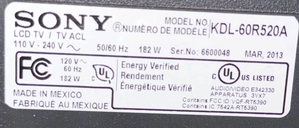 * Model: KDL-60R520A