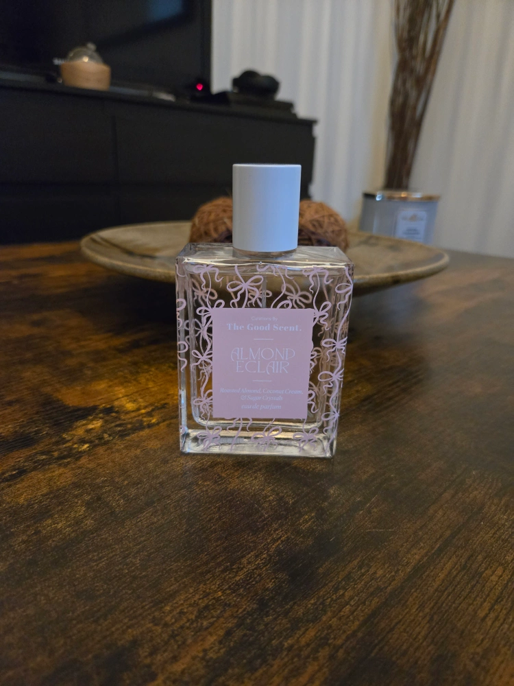 Selling a bottle of The Good Scent. Almond Eclair eau de parfum. It features notes of Roasted Almond, Coconut Cream, and Sugar Crystals. Sprayed once!