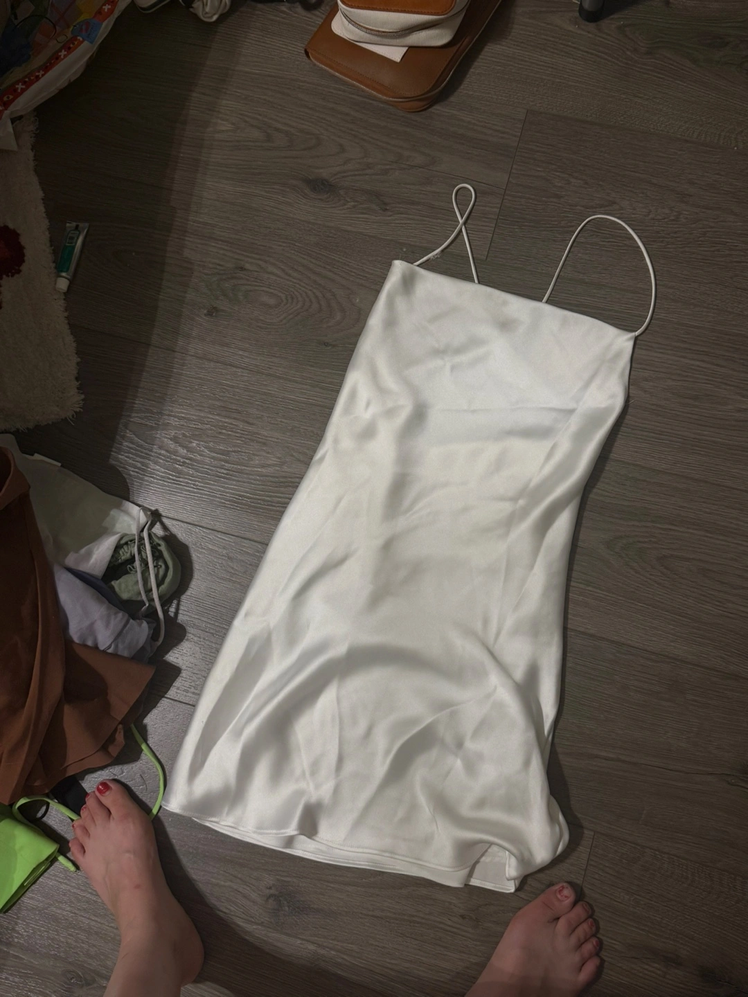 Zara White Mini Strap Silk Dress Open Back