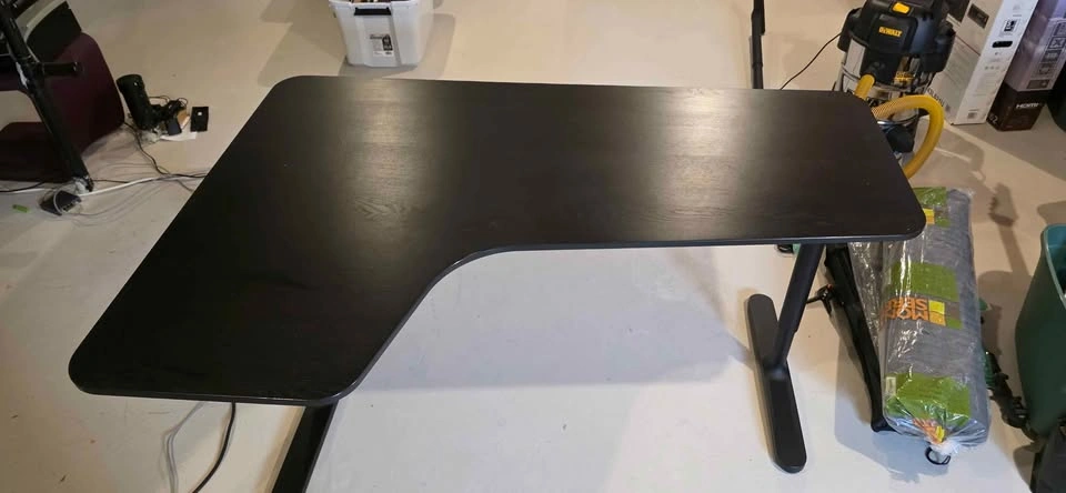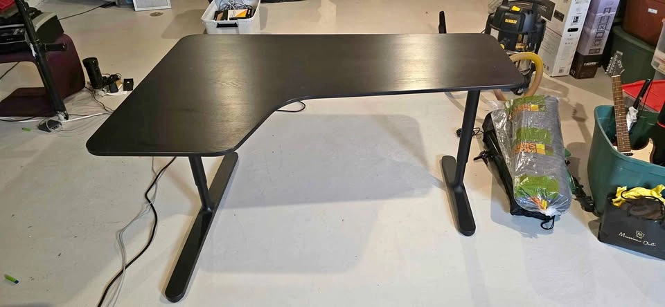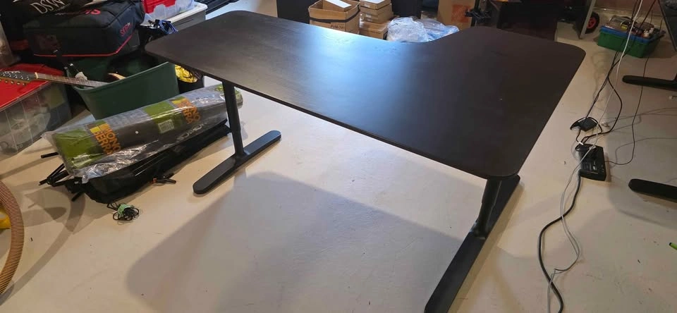 Okay, I'm looking to sell my corner desk, and it's a great deal! The desk is the black BEKANT from IKEA, perfect for small spaces. It's got a tiny scratch, but it's hardly noticeable, trust me. I'm hoping to find a new owner soon so I can get some extra space back. This desk is ideal for anyone working from home or needing a functional workspace. Hit me up if you're interested!