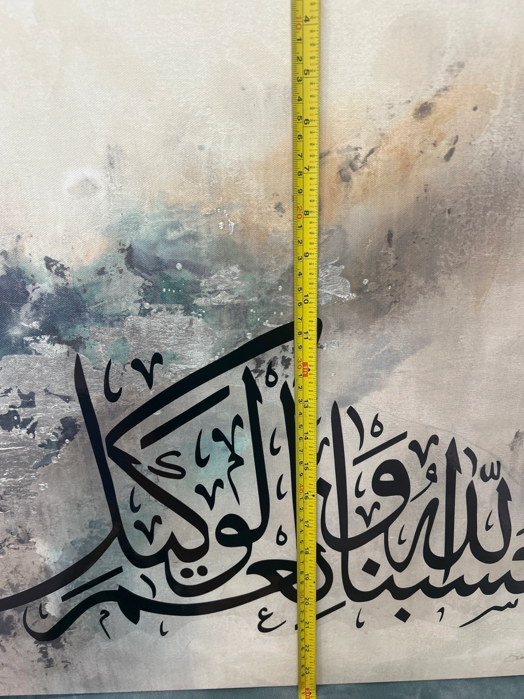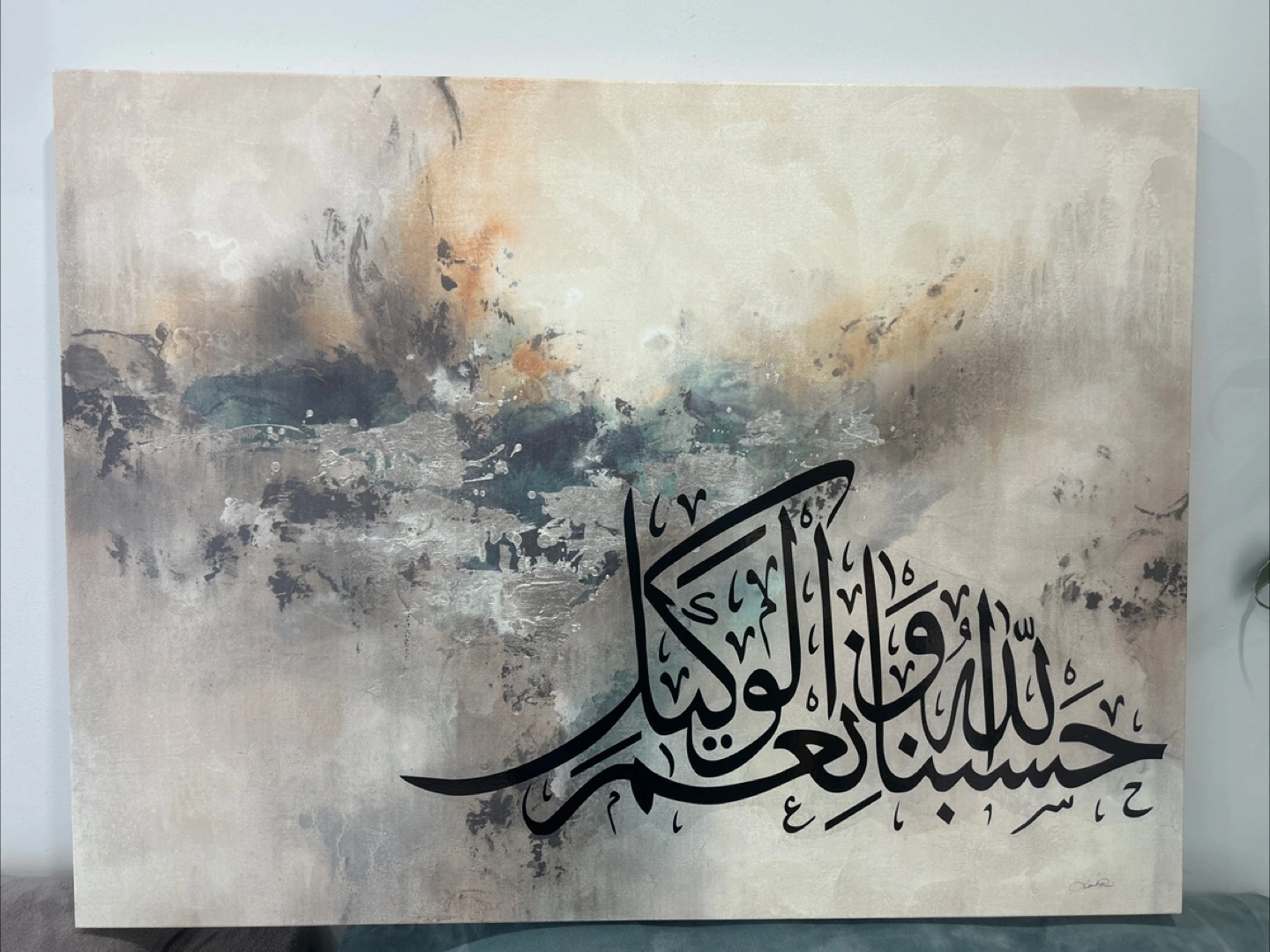 60Selling a beautiful piece of Islamic calligraphy canvas art. It measures approximately 24 inches in height and 36 inches in width, making it a striking addition to any room.