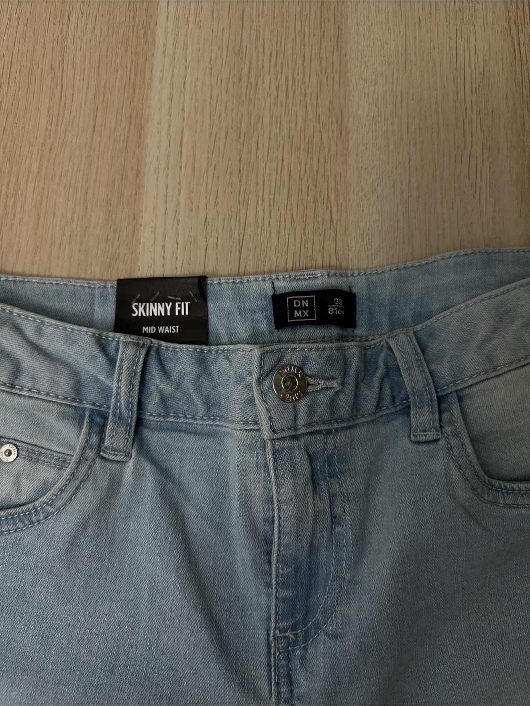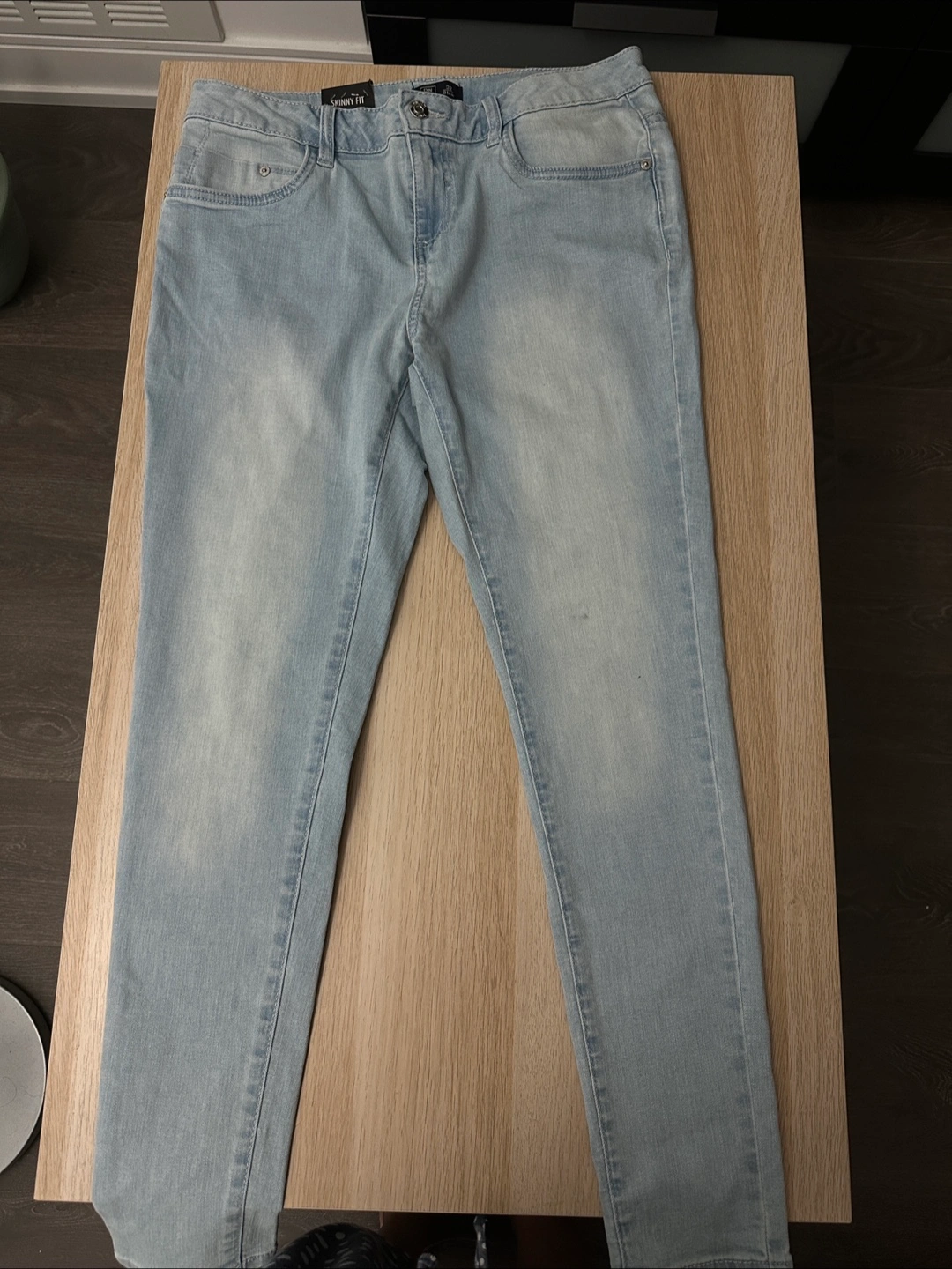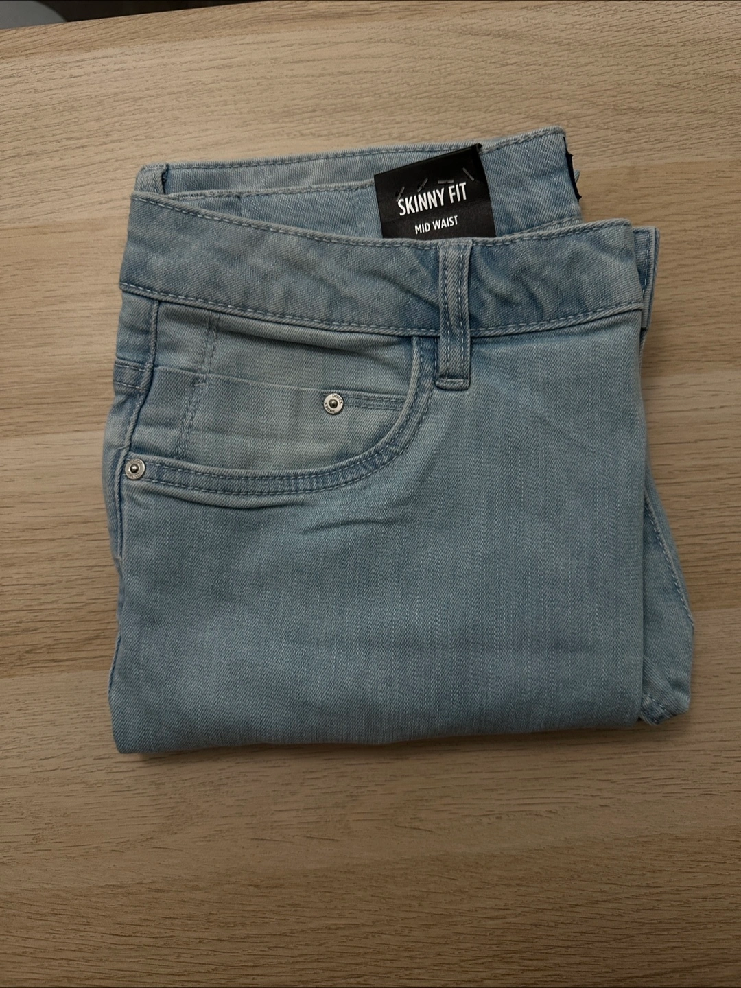 New item - comes with tag - Selling a pair of skinny fit jeans in a light wash. They are size 32 and have a mid waist. Great for a casual look!
