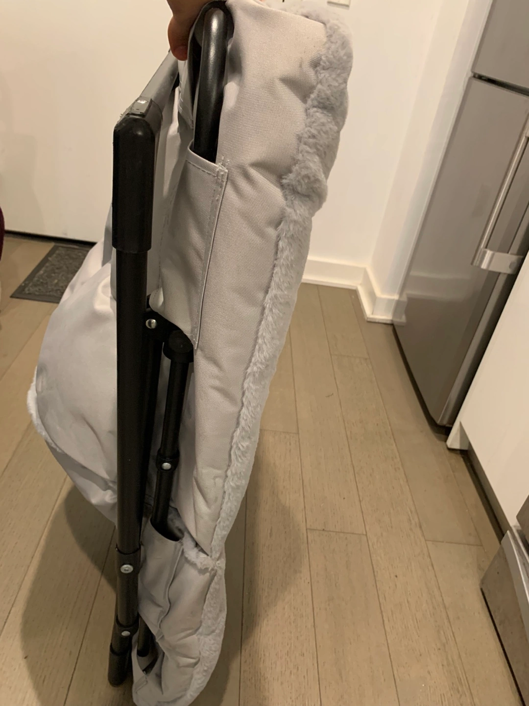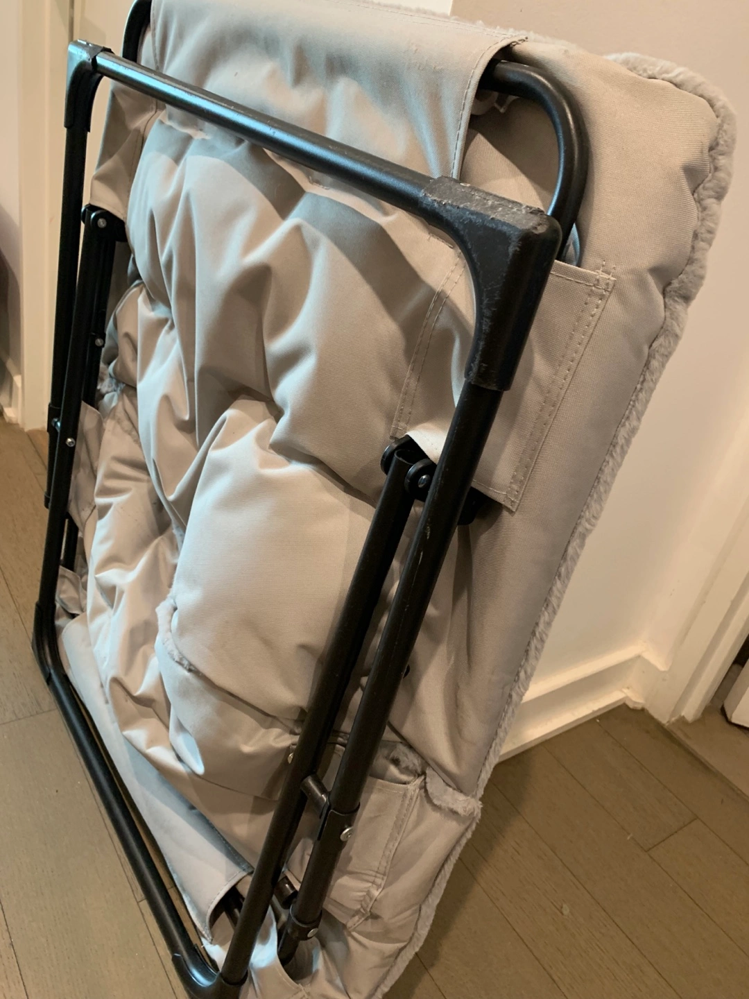 Get cozy with this foldable padded moon chair! It's perfect for adding a touch of comfort to any room. The chair is gray, features a soft, plush material, and folds easily for storage or transport.