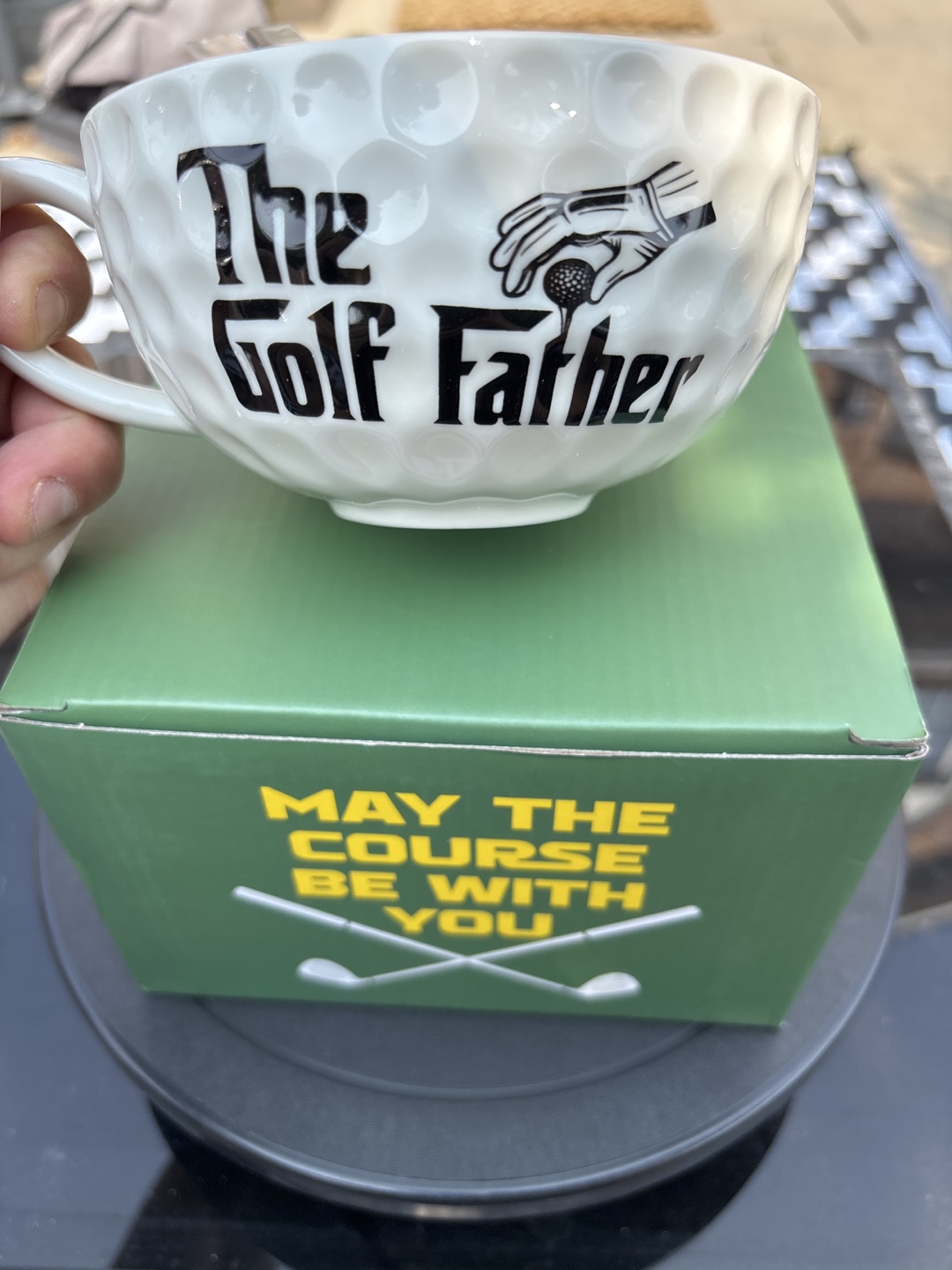 Selling a 'The Golf Father' mug! It comes with a spoon and the original box. 'May the course be with you' is printed on the box. Great gift for any golf lover!