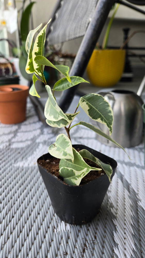 433Selling a small variegated Ficus Benjamina propagation cutting. It's in a black plastic 2" pot and has lovely green and white leaves. It's a cute little plant that would look great in any home!