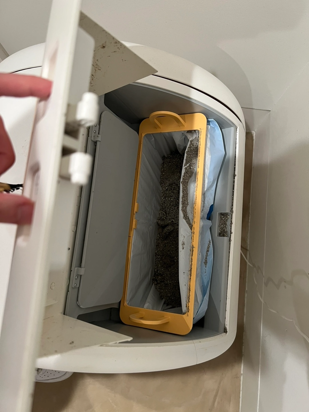 There’s a breakage on the trash bag frame but functions as before. Will empty the litters, wash clean and disinfect before picking up