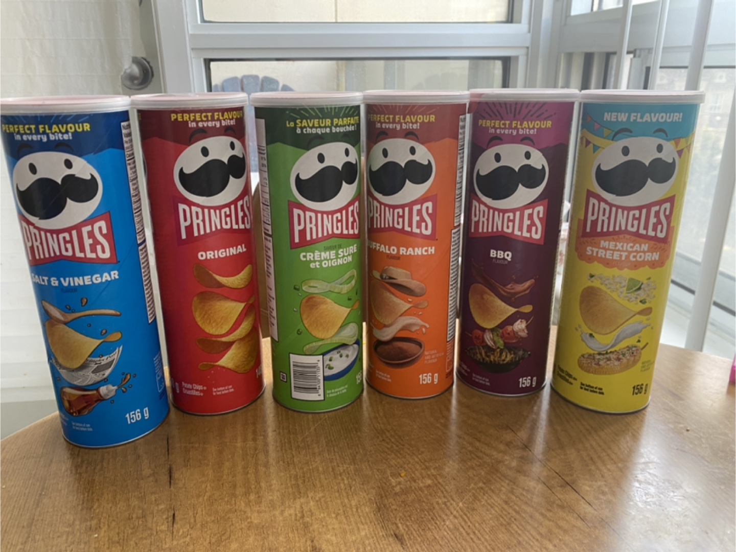 Selling a variety pack of Pringles! Includes Salt & Vinegar, Original, Crème Sure et Oignon, Buffalo Ranch, BBQ, and Mexican Street Corn flavours. Perfect for snacking!