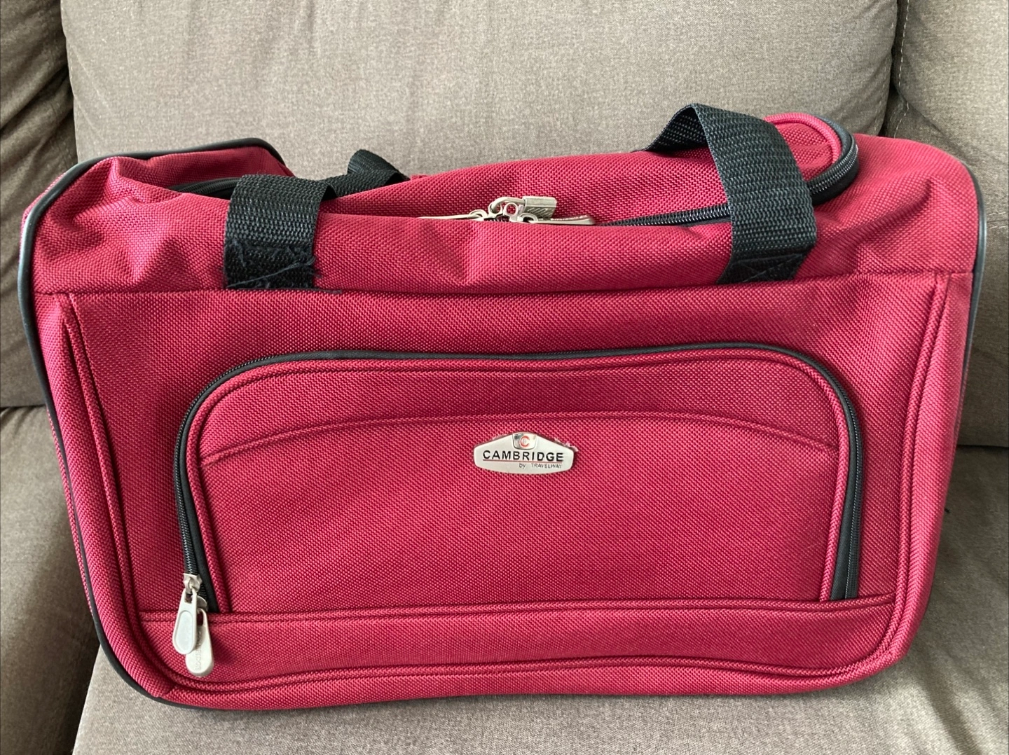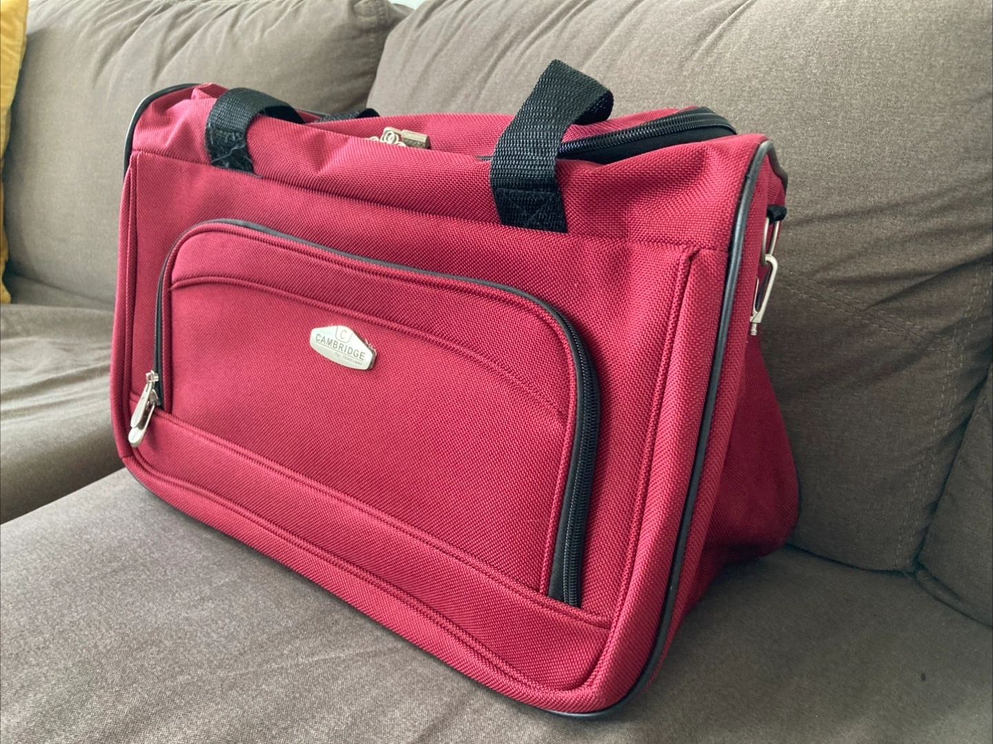 Selling a Cambridge carry-on luggage bag. It's a nice burgundy colour with black straps. Great for travel!