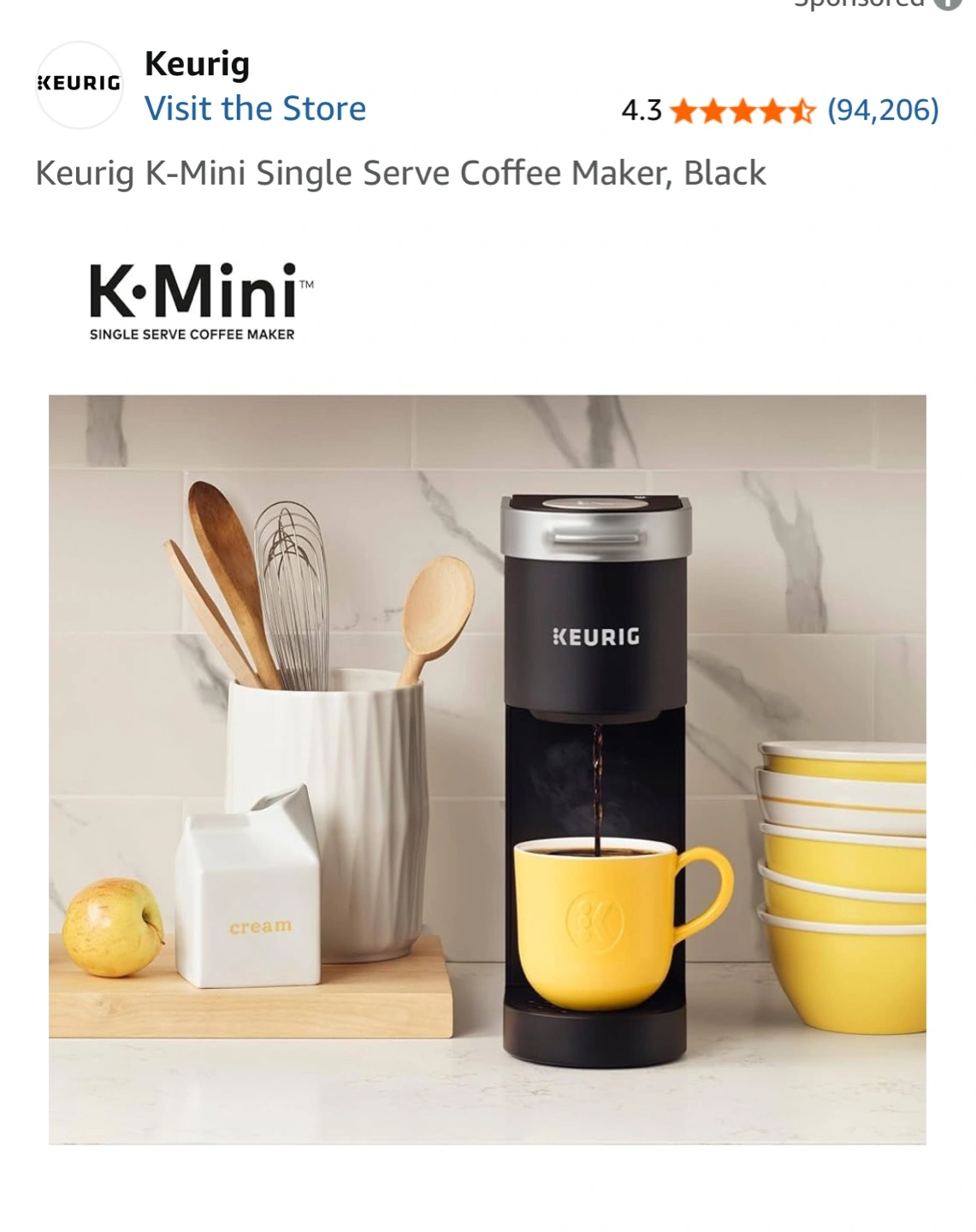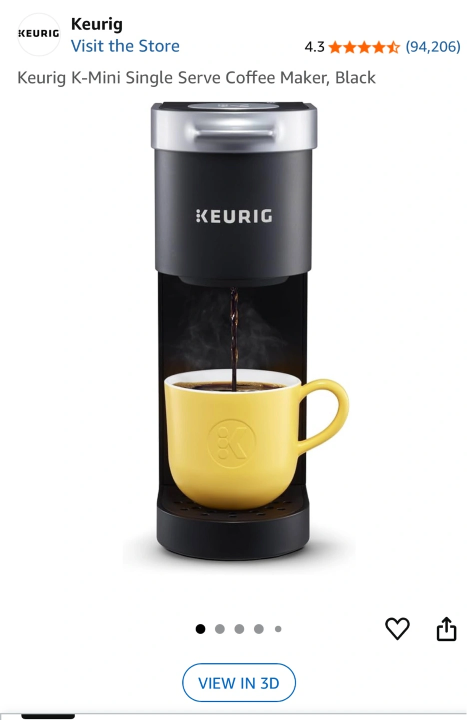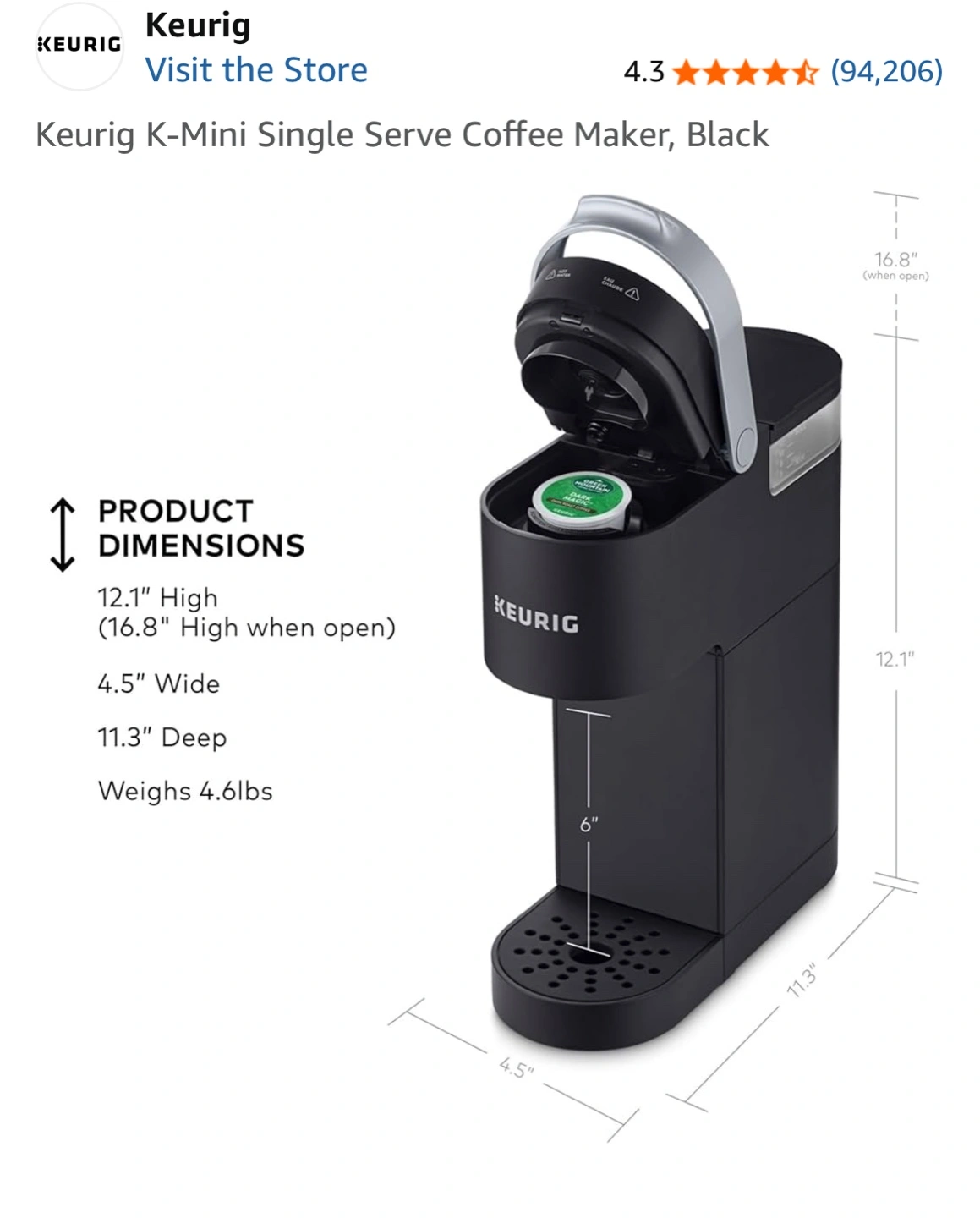 106Selling a brand new/unopened Keurig K-Mini single serve coffee maker in matte black Key features - Dimensions: 12.1" High (16.8" High when open), 4.5" Wide, 11.3" Deep - Weighs 4.6lbs - Single serve Comes with the original box! https://a.co/d/bzrWDsZ