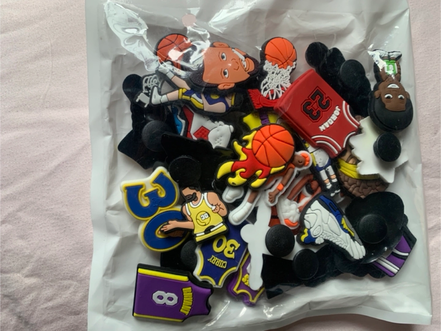 Accessorize your Crocs with these fun basketball-themed charms! You'll find NBA players like Jordan, Curry, and Bryant, along with basketballs, jerseys, and sneakers