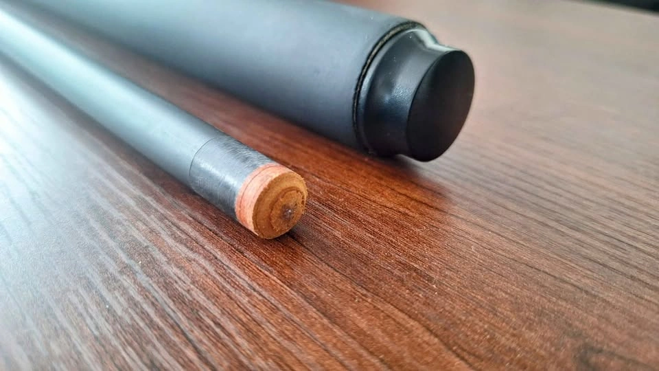 Carbon fiber pool/billiards cue stick, 57-58 inches, 19 oz. Available in 13 mm tip (tip may differ from picture based on latest batch received). 9mm tip available as well (one piece). Upgraded version available with uniloc joint for $20 more.