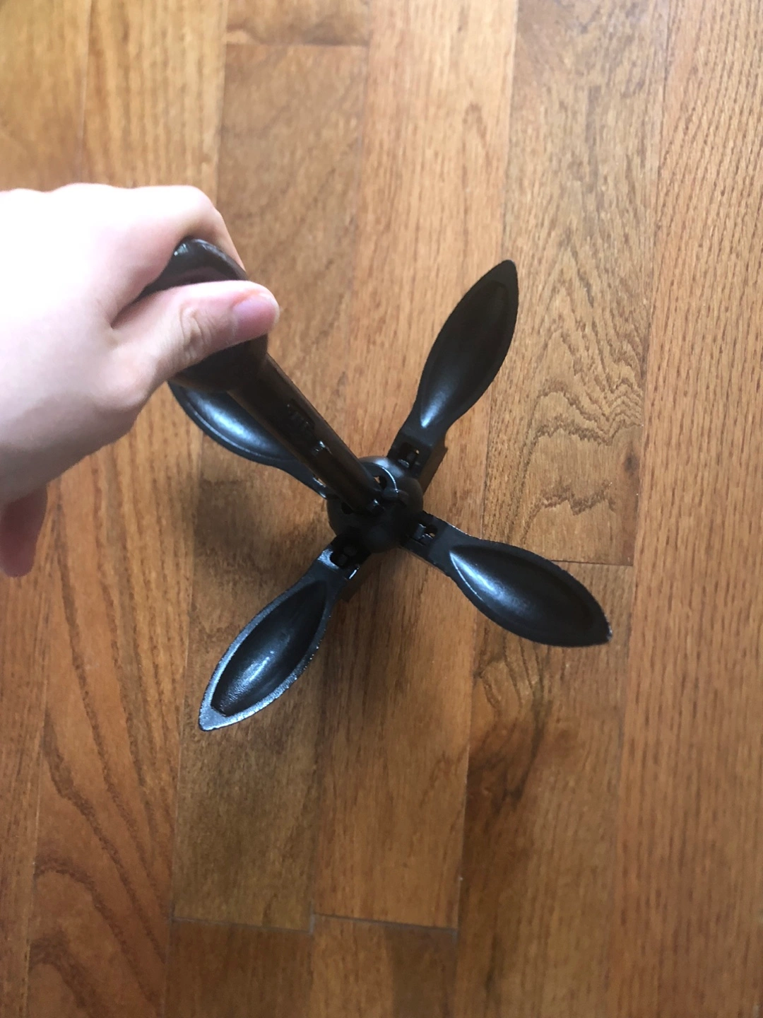 Selling a folding boat anchor in black. It's in great shape and ready to use for your boating adventures! It folds for easy storage and portability. Perfect for small boats, kayaks, or canoes