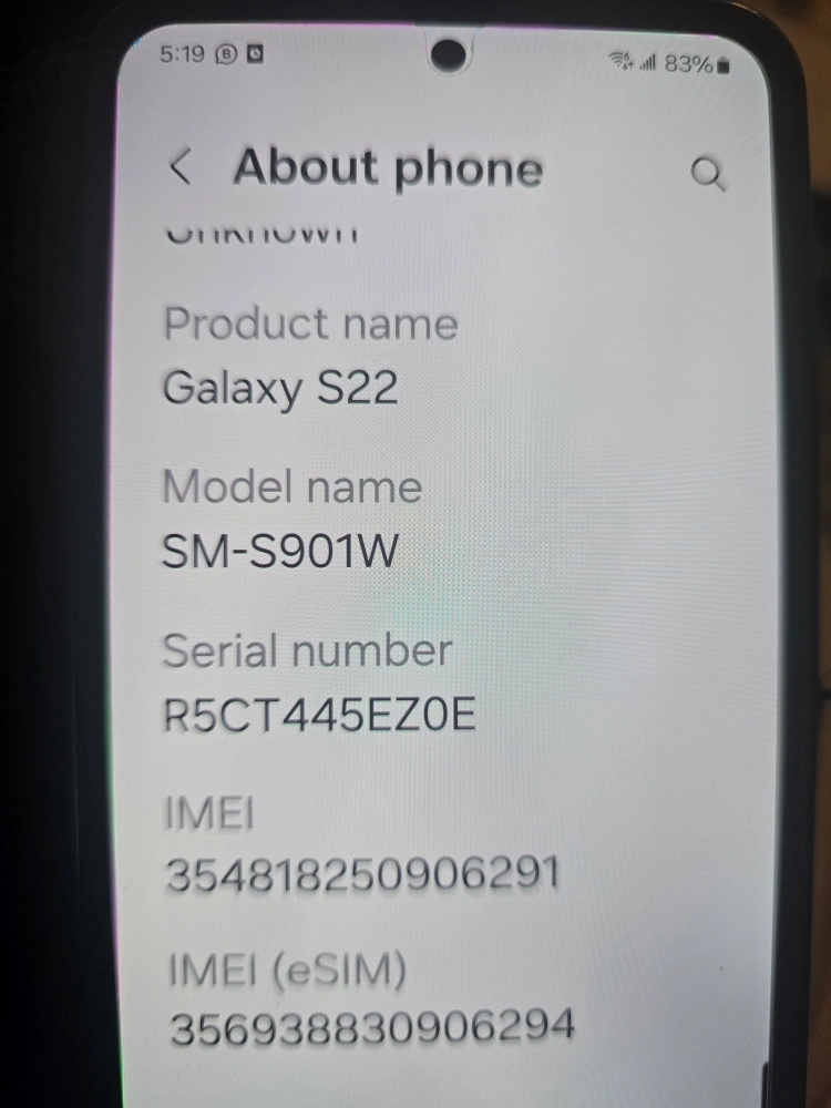 Buy & SellSamsung Galaxy S22 (SM-S901W) - 256GBSamsung Galaxy S22 (SM-S901W) - 256GB$300Selling a Samsung Galaxy S22 with 256GB of internal storage. The model number is SM-S901W. It's in good condition and ready for a new owner!BrandSamsungWHERE TO MEETGlen Erin DrView MapSELLERverifiedAnnieMeadowvale690 reviews3 chats·0 favorites·44 views