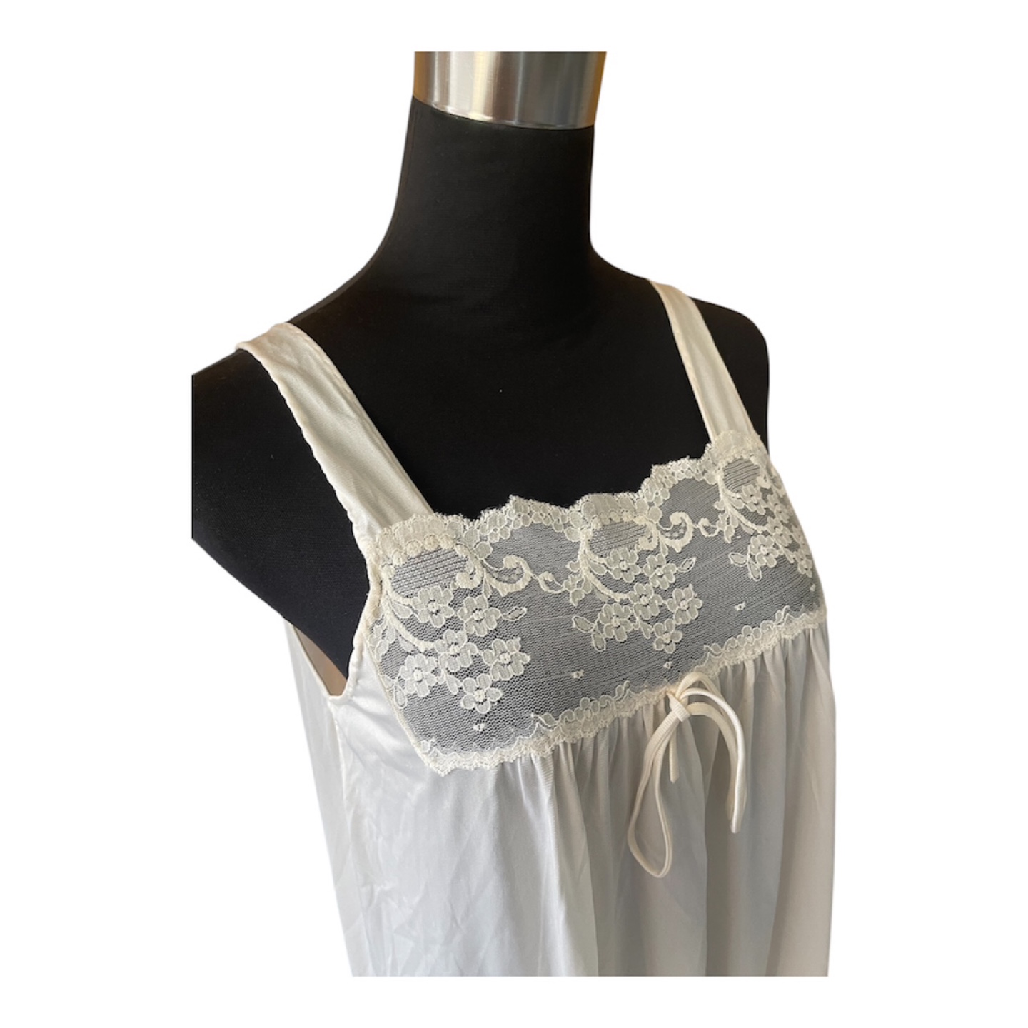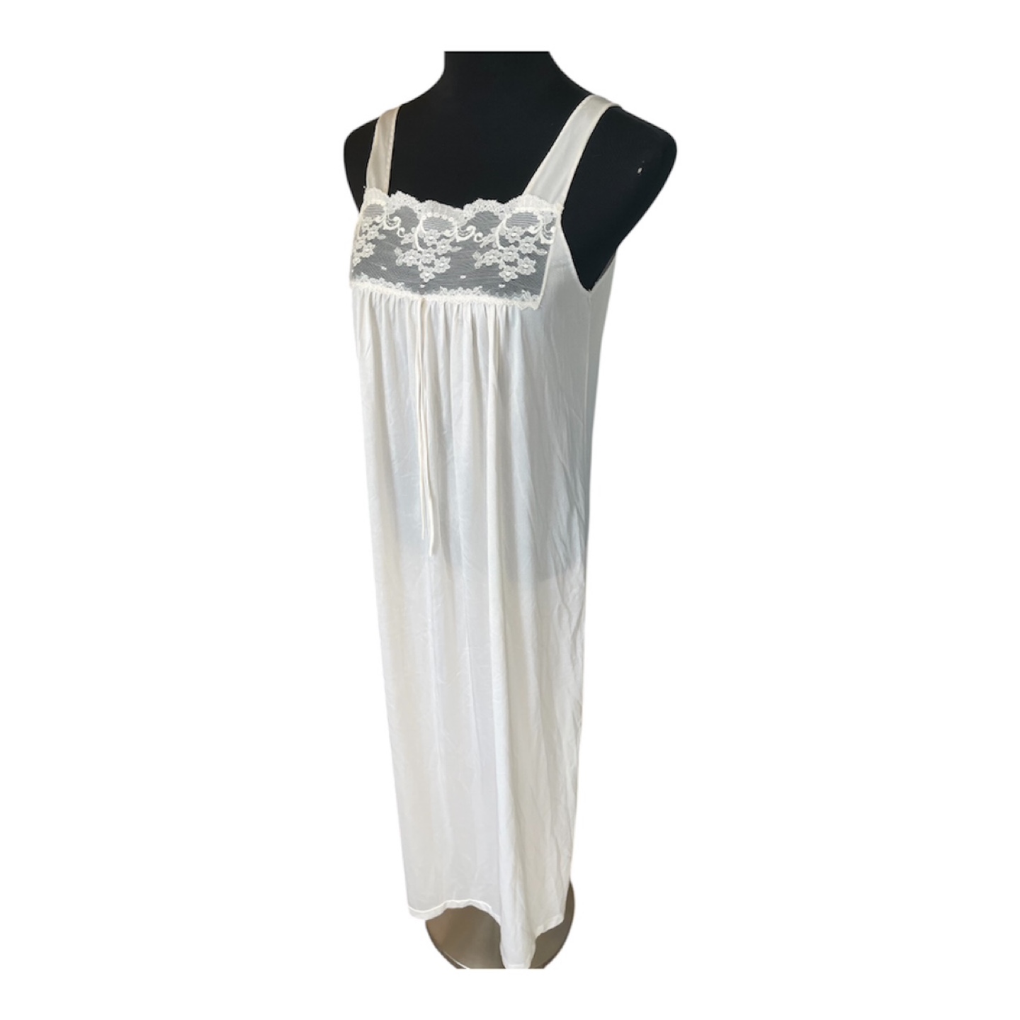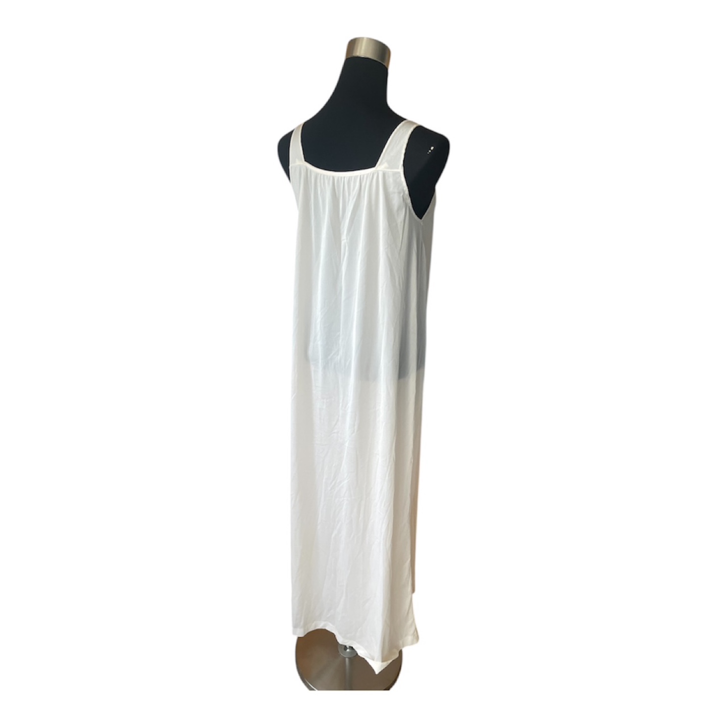 Rare Vintage 90s White Opaque Lace Trim Long Slip Dress Thick Straps Silk S/M