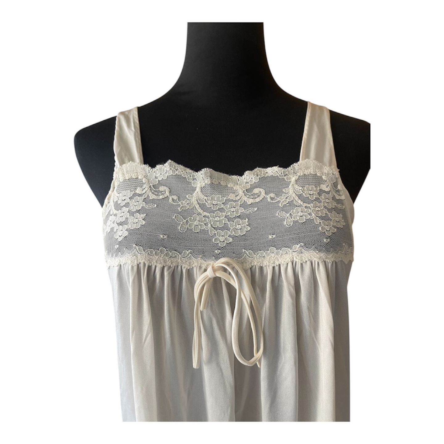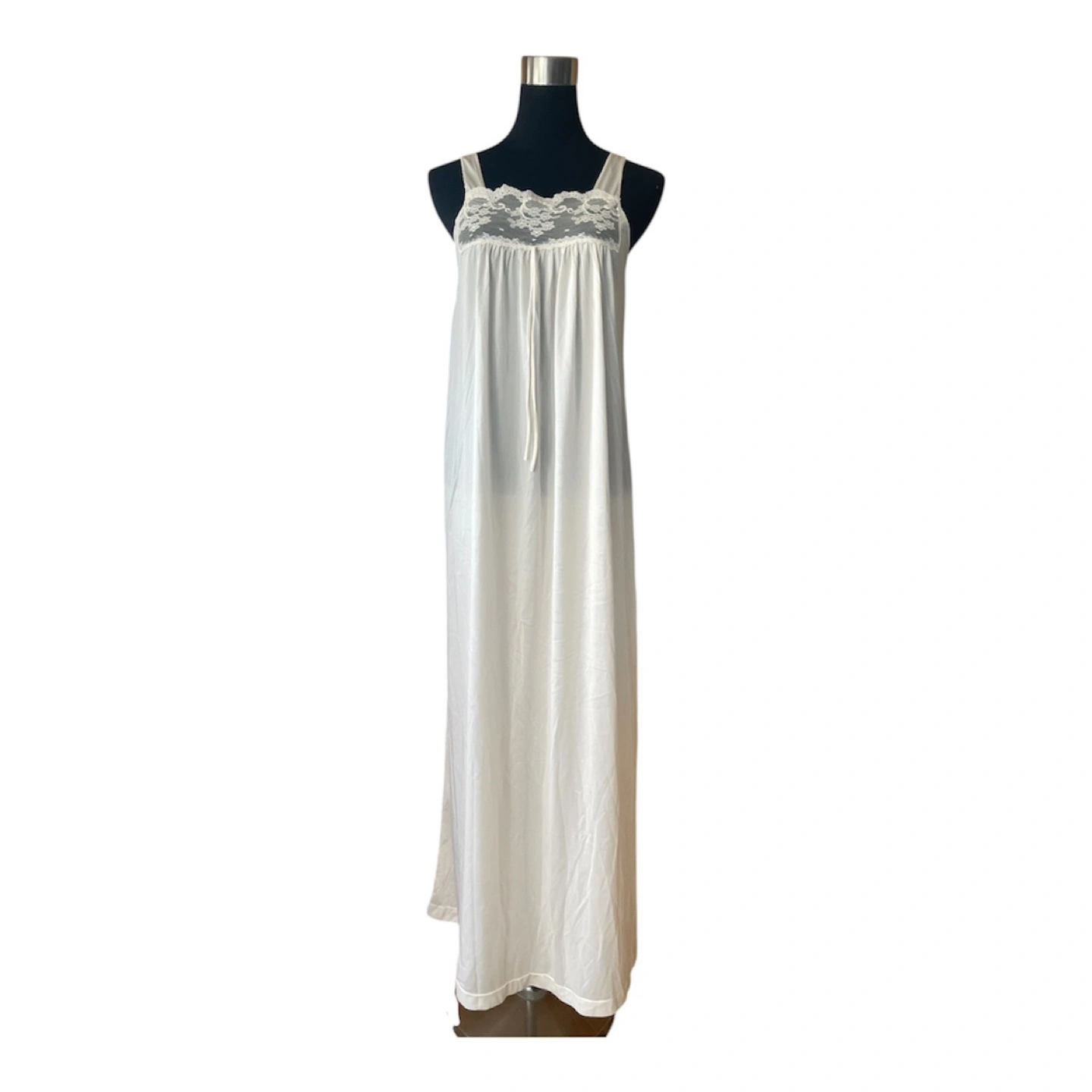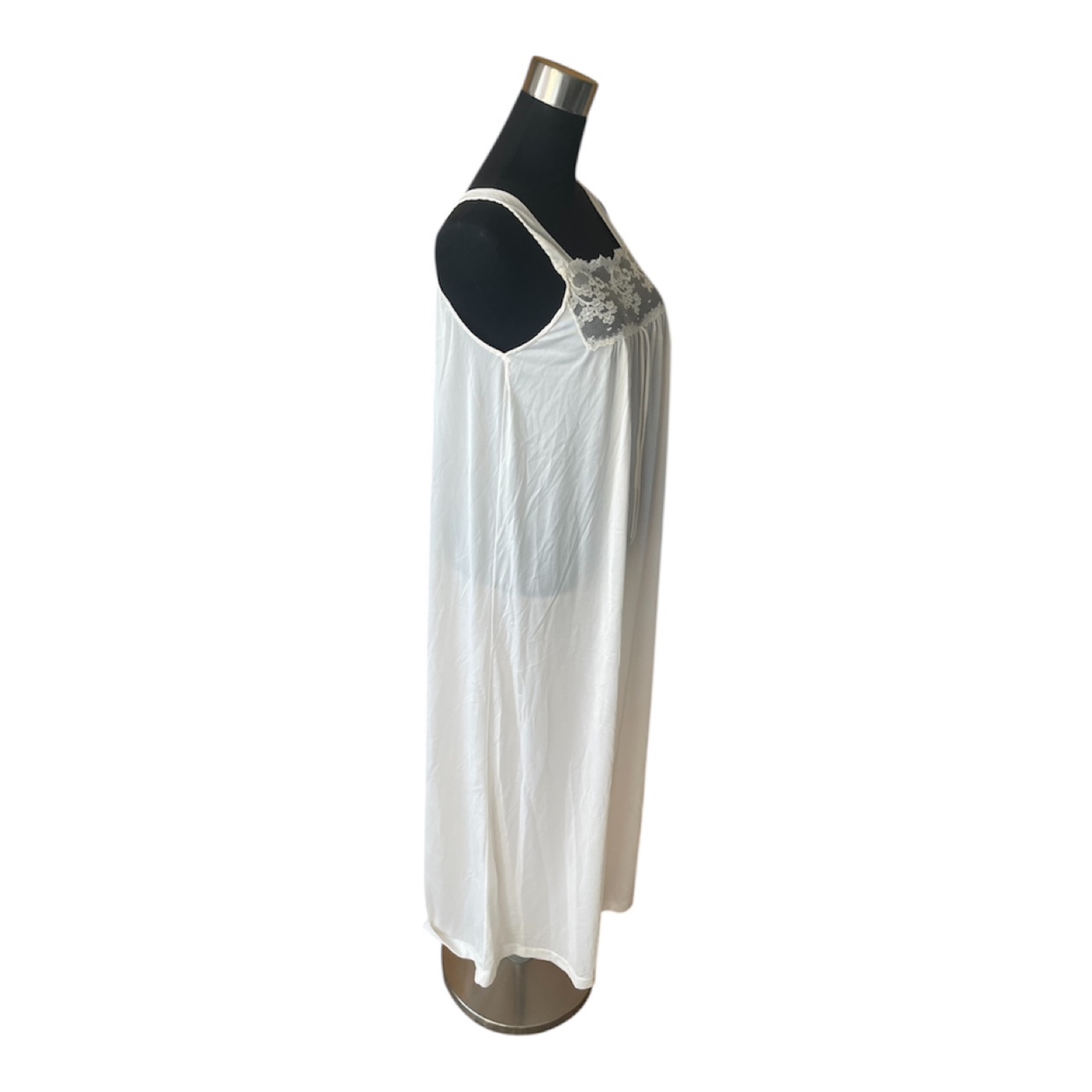 Rare Vintage 90s White Opaque Lace Trim Long Slip Dress Thick Straps Silk S/M