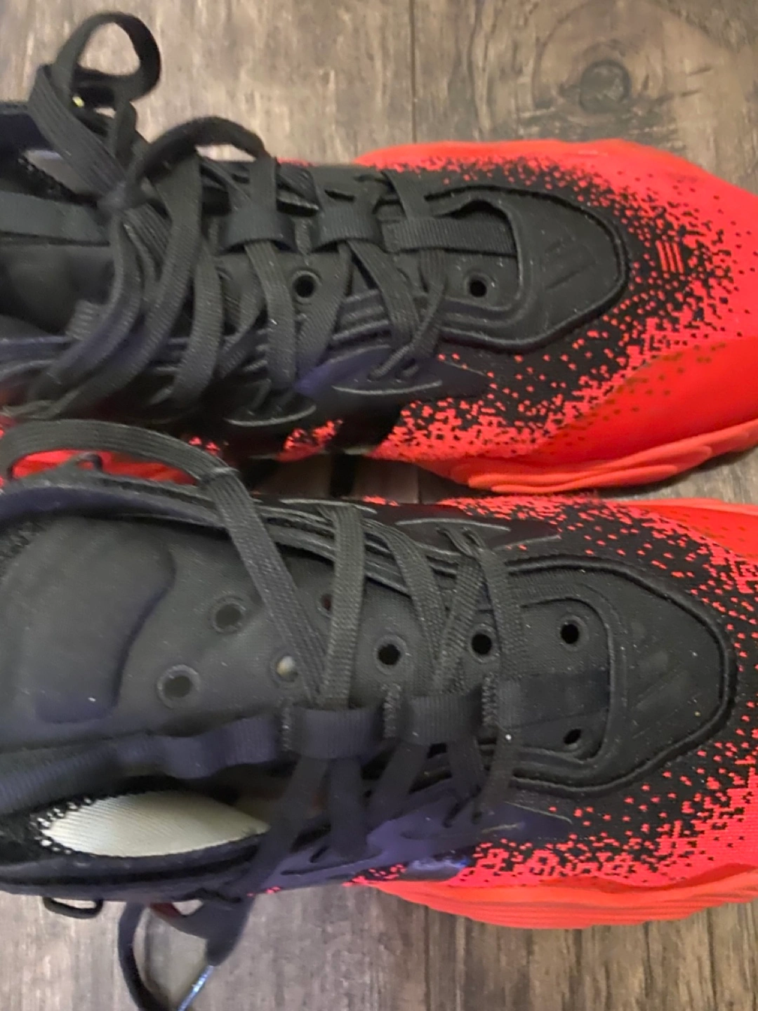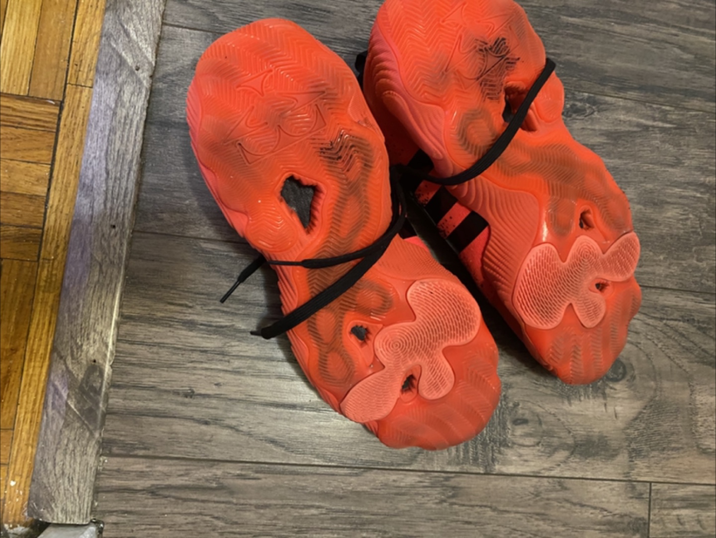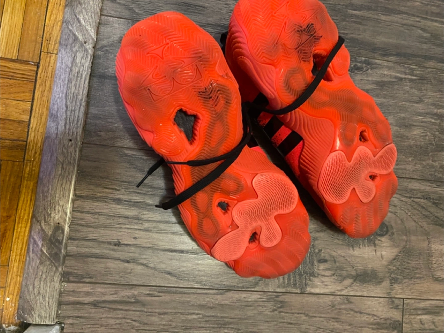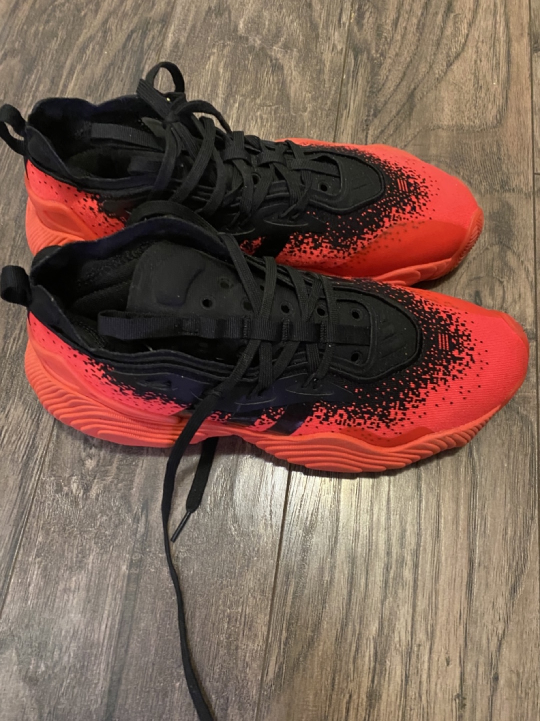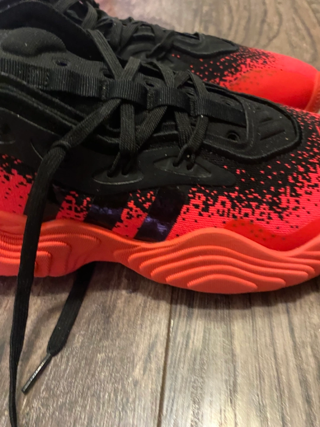 Selling a pair of Adidas Trae Young 2.0 basketball shoes. These are in worn condition, as shown in the photos. They feature a unique red and black colorway and are designed for performance on the court. They are size 9 Cash only I can also do a trade if anyone wants to